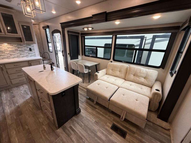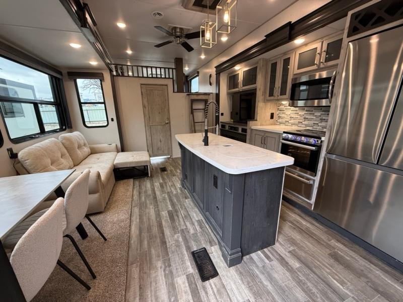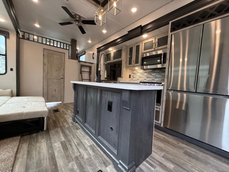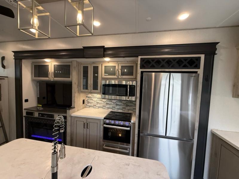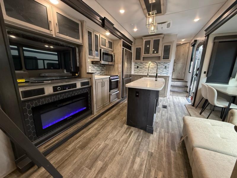 FREE DELIVERY & SETUP!! THIS BEAUTIFUL LIKE NEW 2022 ALPINE AVALANCHE EDITION 390DS IS A 5th WHEEL RV LOADED WITH LUXURY!! 43 LONG. 2 BEDROOM 2 FULL BATHROOMS, 3 A/C, PLUS A HUGE UPSTAIRS SLEEPING LOFT. 4 SLIDES, KING MASTER SUITE. BEAUTIFUL BATHROOM & CLOSET WITH WASHER/DRYER PREP. QUEEN REAR BEDROOM. LARGE LIVING AREA WITH THEATER SEATING & UPGRADED RECLINERS. ELECTRIC FIREPLACE & BIG FLAT SCREEN TV. BEAUTIFUL ISLAND KITCHEN with residential refrigerator, STAINLESS STEEL APPLIANCES, and LOTS OF CABINET STORAGE & A BIG PANTRY. FULLY ENCLOSED & HEATED UNDERBELLY. 4 SEASONS PACKAGE WITH UPGRADED INSULATION. DESIGNED FOR YEAR-ROUND COMFORT IN HOT OR COLD CLIMATES. KING SATELLITE. 3 COLD A/C UNITS. 50AMP POWER. AUTO-LEVELING SYSTEM. HUGE BASEMENT STORAGE SOLID STEP ENTRY. DUAL AWNINGS WITH LED LIGHTS. LUXURY FEEL THROUGHOUT!!, OUTDOOR STORAGE. UVW 12904. WASHER/DRYER PREP. OUR PRICE: $49,995. WE HAVE MULTIPLE HIGH-END FIFTH WHEELS TO CHOOSE FROM!!We are located in KENNEDALE, TX. We show RVs 7 DAYS A WEEK BY APPOINTMENT. Call BRET 8178050067 or AMY 817658
