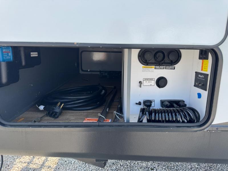 With any Keystone Bullet travel trailer you can experience ultra-lightweight camping with style! The interior design and functionality will impress you, and the stunning cabinetry, the vaulted ceilings, and the built-in laundry chute are just a few of the highlights. Each is built with Hyper Deck RV flooring that is stronger, lighter and more resilient than traditional wood laminated flooring, a 51 cu. ft. pass-through storage compartment which provides 25% more storage space and has a 40" wider door meaning easier access and more room for supplies, and a docking station, an easily accessible convenience center with water connections, water heater bypass, KeyTV hookups, stabilizer jack switches and winterization access. You will also find a Giggy box, a weather protected, labeled, and fused electric box, plus more Keystone Exclusives. Start your glamorous and carefree trip today in a Bullet!