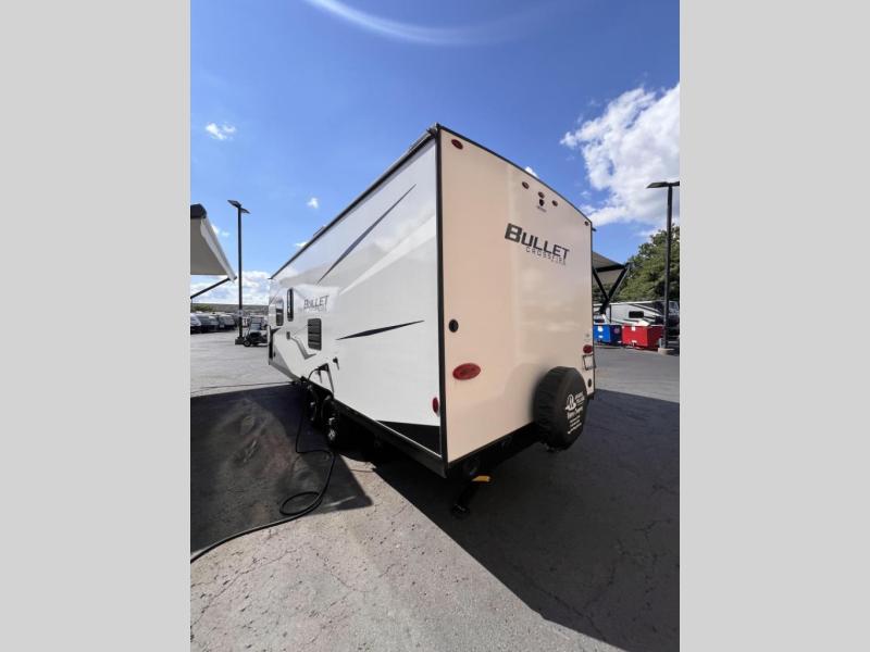 Each Bullet Crossfire by Keystone is constructed with a NORCO HSLA steel/automotive deposition coated frame assembled with huck bolts for durability. The one-piece ABS enclosed underbelly will help extend your camping season, and the Dexter E-Z Lube axles will provide smooth towing from home to campground. Setting up your trailer will be a breeze with the electric tongue jack and four electric stabilizer jacks, and there is an electric awning with adjustable arms and LED lighting for an inviting outdoor living space. The affordable, high-quality RV solar energy system, SolarFlex 200 comes standard with each model and will allow you to go off-grid when you want. Inside, you'll find fabric night shades, Beauflor with woven flooring in the slides, full depth cabinets with full extension drawer guides, and many more comforts.