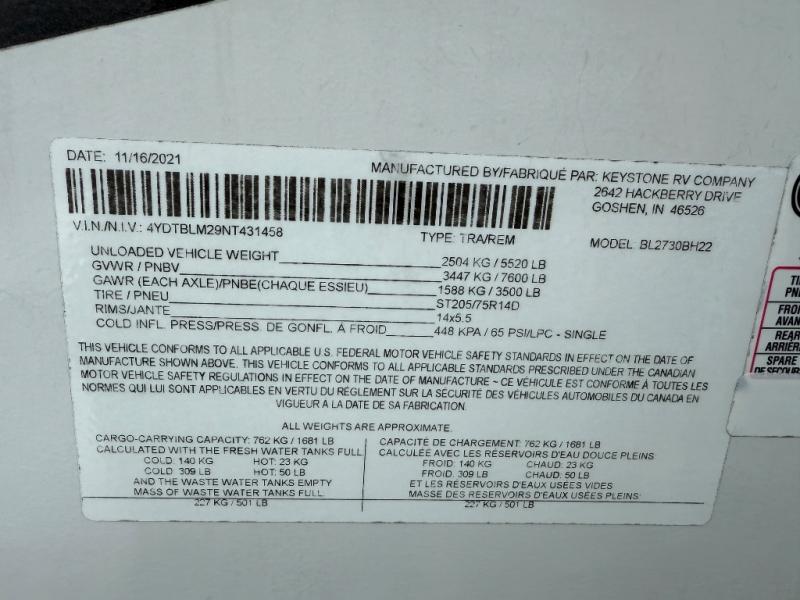 Used 2022 Keystone RV Bullet Crossfire 2730BH Travel Trailer