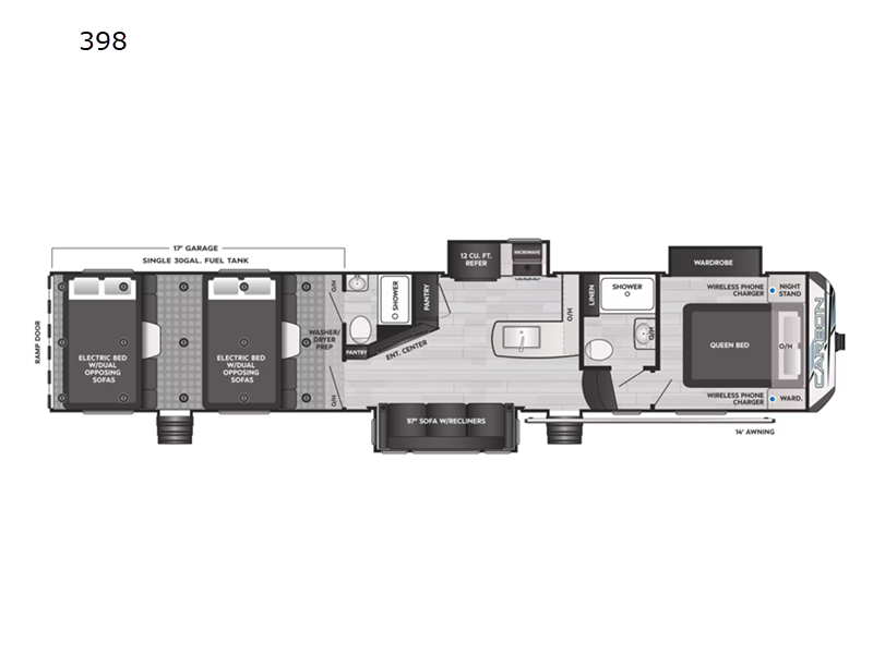 Keystone Carbon toy hauler 398 highlights: