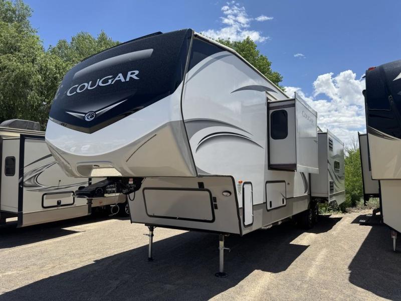 Spend more time having fun and less time worrying about your RV with the Keystone Cougar fifth wheel! These units have all that you will need for excellent vacations. The interior comes with 5/8" one-piece DynaSpan® flooring, tall slide outs for added comfort and head room, night roller shades throughout, residential, raised-panel hardwood cabinet doors and drawers, decorative crown molding, a 5,500 BTU electric fireplace with thermostat control and remote, and a Max Air exhaust fan with rain sensor. The exterior is also fully outfitted with a convenience center, friction-hinge entry door, electric four-point auto leveling system, an LCI® SolidStep® on main entry, a full pass-through storage with slam-latch baggage doors, an industry-best 80-gallon fresh tank capacity, a 2" accessory hitch with 300-LB storage capacity, and an outside shower.