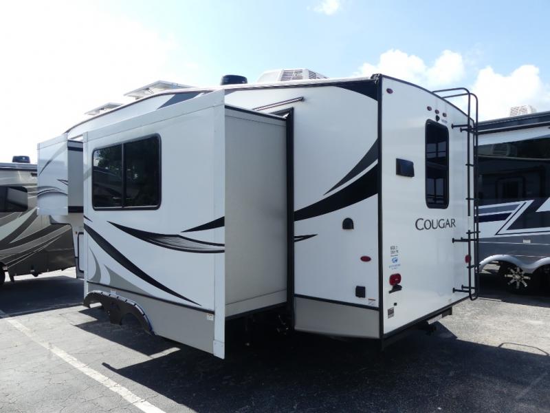 Whatever you do, do it in style with this Cougar Half-Ton fifth wheel! A private bedroom up front will allow you to grab a new outfit from the wardrobe slide and change in privacy before heading out on an adventure. If you'd rather stay inside, you can sit back on the theater seats and relax. You can also have a good lunch while you stay inside because the 21" Furrion range with Piezo ignition will make it easy to prepare any of your favorite meals. There is also an LED HDTV that can be used for fun entertainment at the end of a long and exhausting day.