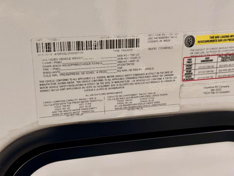 Used 2022 Keystone RV Cougar Half-Ton 24RDS Fifth Wheel