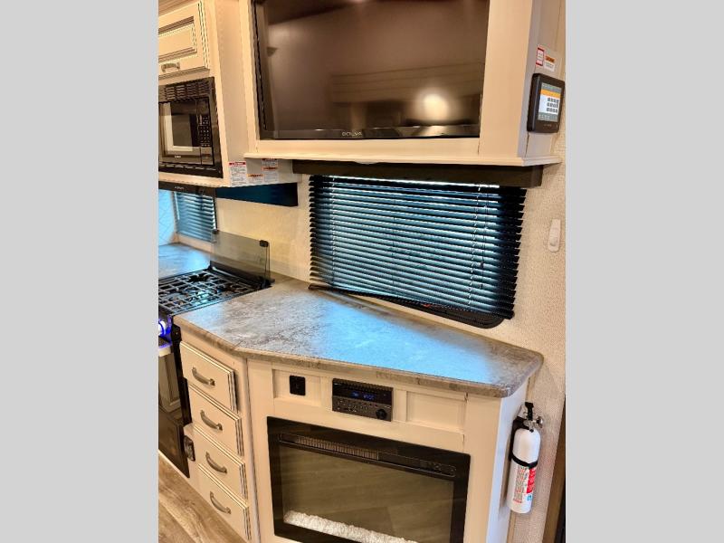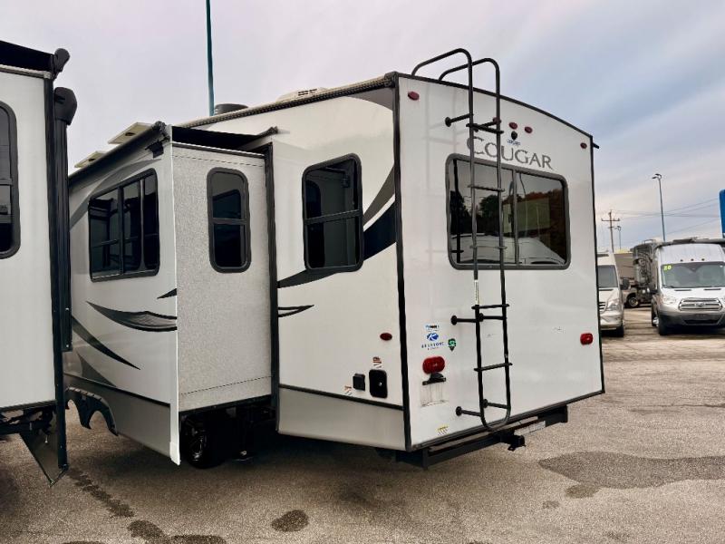 Spend your weekends in comfort with this Cougar Half-Ton fifth wheel! A full bathroom with a linen closet and shower with seat will provide convenience no matter where you've chosen to camp. You'll also be grateful to find a full kitchen with a 21" Furrion range with Piezo ignition and microwave so that you can get dinner ready in no time at all, and the private bedroom up front is where you will want to be at the end of a long day. You can also add an optional fireplace to this model to create a cozy atmosphere.