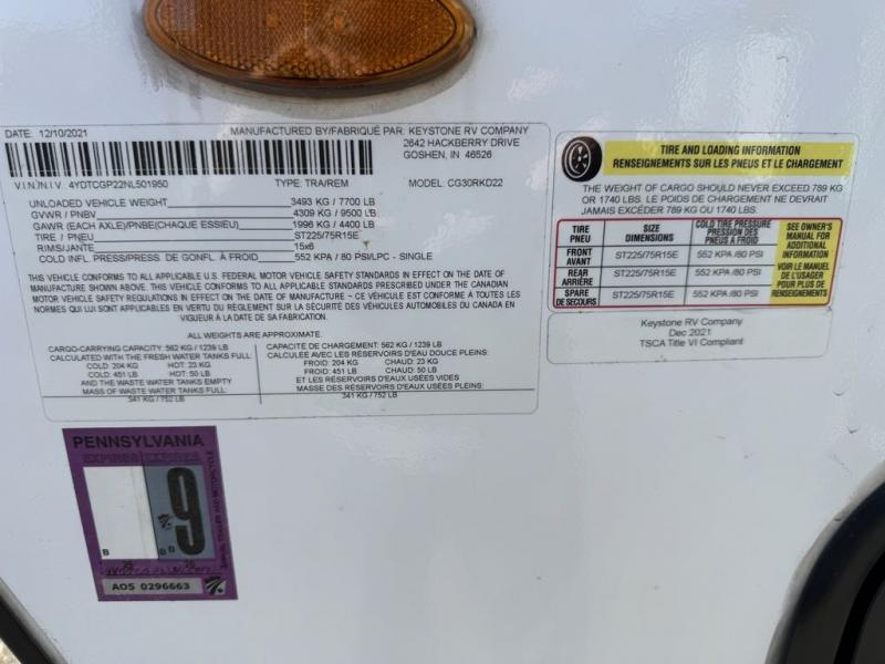 Used 2022 Keystone RV Cougar Half-Ton 30RKD Travel Trailer