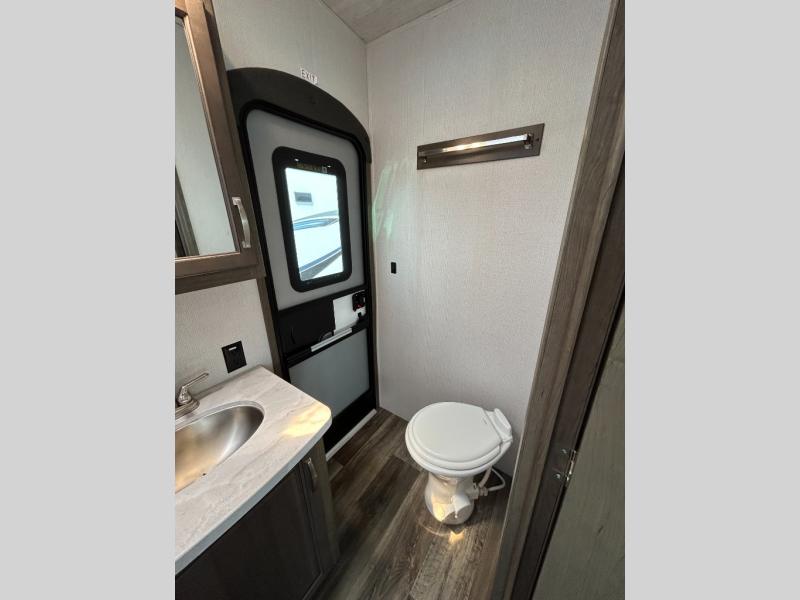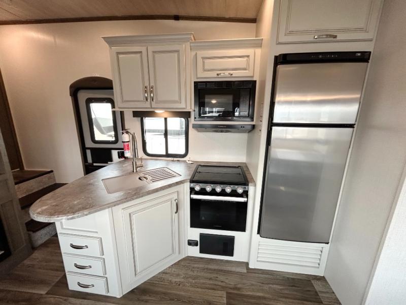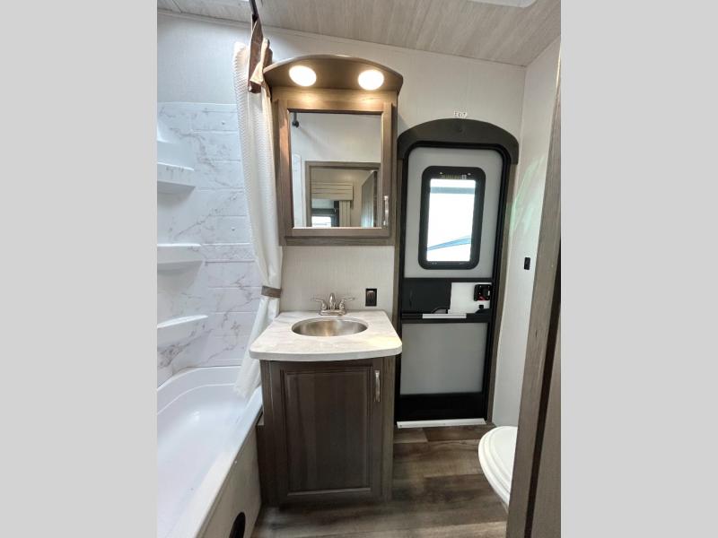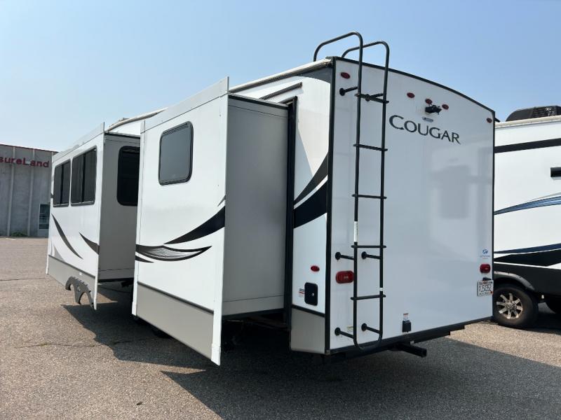 You won't have any trouble convincing your friends or family to join you on an adventure with this Cougar Half-Ton fifth wheel! Since this unit has both a full and a half bathroom, it will be easy for everyone to get ready in the morning, and the 21" Furrion range will allow you to whip up a full batch of pancakes for your guests. Store any leftovers in the 8-cubic foot refrigerator before heading out on your next exciting expedition. If you need your backpacks and hiking gear, you can grab them from the exterior pass-through storage, and you can create a cozy living area by adding the optional fireplace.