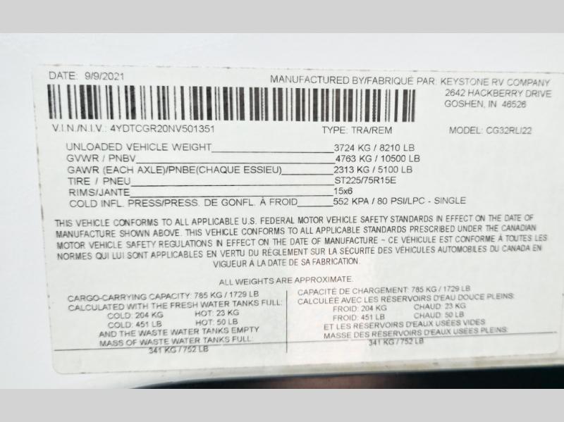 Used 2022 Keystone RV Cougar Half-Ton 32RLI Travel Trailer