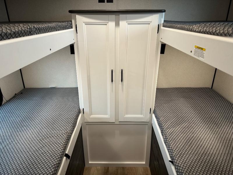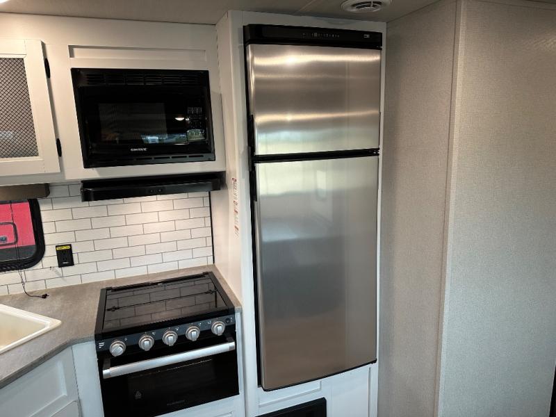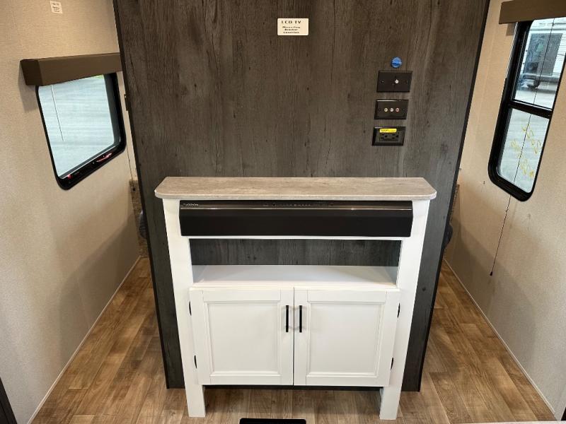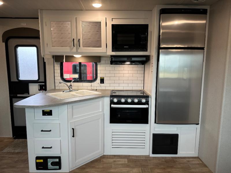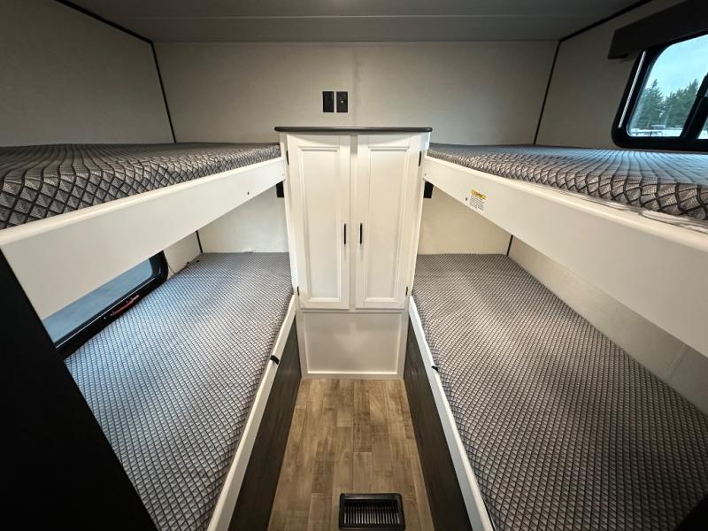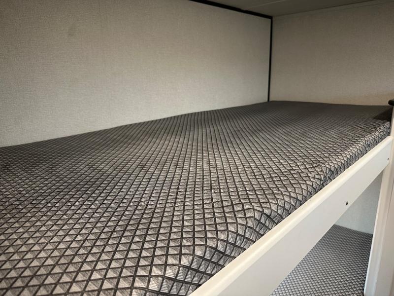 With this Hideout travel trailer, you will have tons of exterior storage! There is a wrap-around storage around the back, and the front has a pass-through storage compartment for even more gear. When you're inside, you'll also notice that you have quite a lot of space to keep items in the bunkhouse closet, kitchen pantry, 10-cubic foot refrigerator, and bedroom closets. The large slide creates more living space, and the central vacuum helps you clean up spills when they happen. This trailer has been prepped for a fireplace, and you can also add an optional 40" HDTV if you wish.