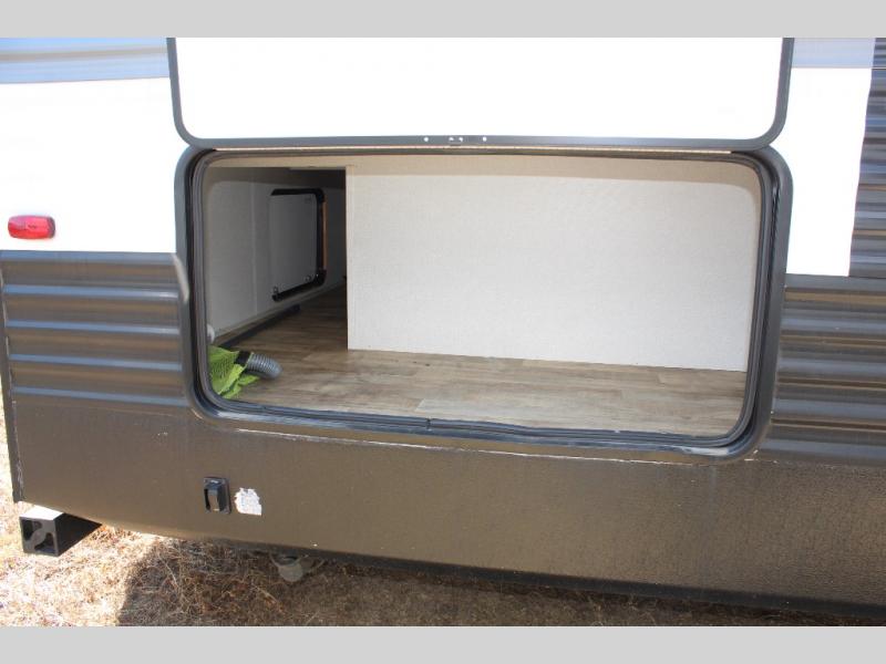 With this Hideout travel trailer, you will have tons of exterior storage! There is a wrap-around storage around the back, and the front has a pass-through storage compartment for even more gear. When you're inside, you'll also notice that you have quite a lot of space to keep items in the bunkhouse closet, kitchen pantry, 10-cubic foot refrigerator, and bedroom closets. The large slide creates more living space, and the central vacuum helps you clean up spills when they happen. This trailer has been prepped for a fireplace, and you can also add an optional 40" HDTV if you wish.
