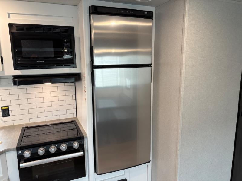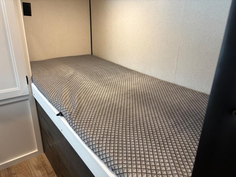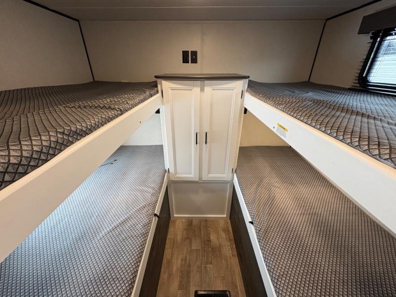 With this Hideout travel trailer, you will have tons of exterior storage! There is a wrap-around storage around the back, and the front has a pass-through storage compartment for even more gear. When you're inside, you'll also notice that you have quite a lot of space to keep items in the bunkhouse closet, kitchen pantry, 10-cubic foot refrigerator, and bedroom closets. The large slide creates more living space, and the central vacuum helps you clean up spills when they happen. This trailer has been prepped for a fireplace, and you can also add an optional 40" HDTV if you wish.