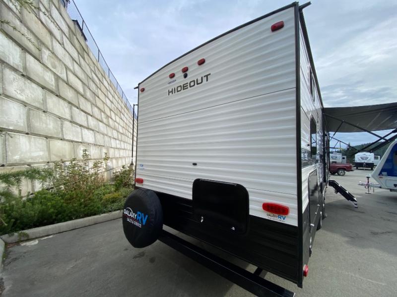 The Keystone Hideout travel trailer, fifth wheel, and destination trailer will be just what the doctor ordered for a stress-free holiday at your favorite campsite! There are a few exclusive features that you'll only find on a Keystone product, like the color-coded unified wiring, the preparations for 4G LTE and Wi-Fi, the Tuf-Lok™ thermoplastic duct joiners, the in-floor heating ducts, and the Tru-fit™ slide construction. Each model has a power awning for some shade in the afternoon, and the tinted safety glass windows will prevent the harmful UV rays from getting inside. You'll also have blackout night shades that you can close when you want privacy, and the SolarFlex 200 is a solar power system that will refill your battery to operate onboard 12V systems with just one day of peak sun exposure.