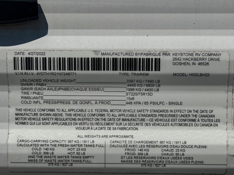 Used 2022 Keystone RV Hideout 32LBH Travel Trailer