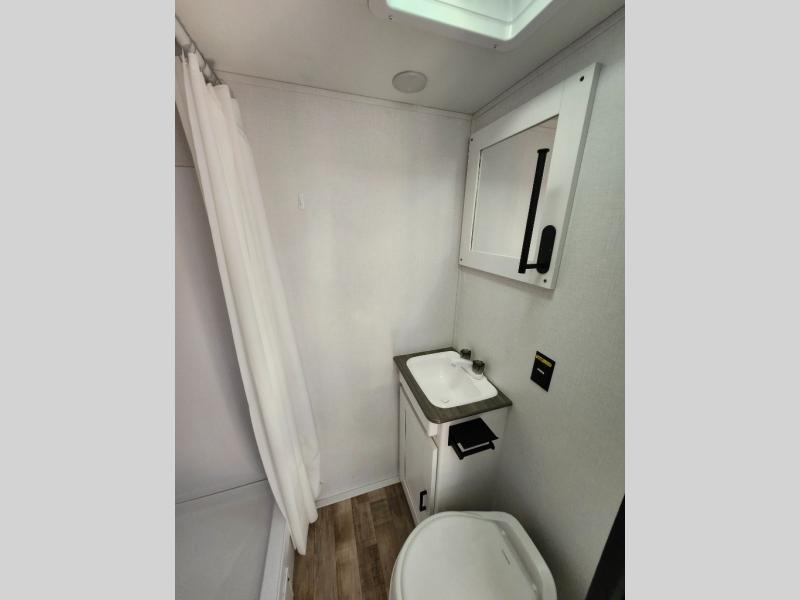 With any Keystone Hideout Single Axle travel trailer, there is an aluminum exterior allowing each to be lightweight for easy towing, the SolarFlex 200 so you can camp off-grid, tinted safety glass windows, and LCI SolidStep entry steps for stability when entering and exiting. The interior is light and airy, and includes a furnace, bedside outlets, blackout night shades, and more. You will also appreciate the Keystone exclusives such as the color-coded unified wiring, the 4G LTE and Wi-Fi prep, the Tuf-Lok thermoplastic duct joiners, the in-floor heating ducts, and the Tru-Fit slide construction.