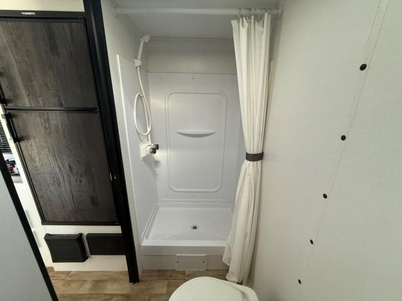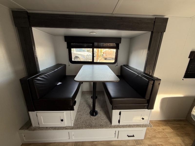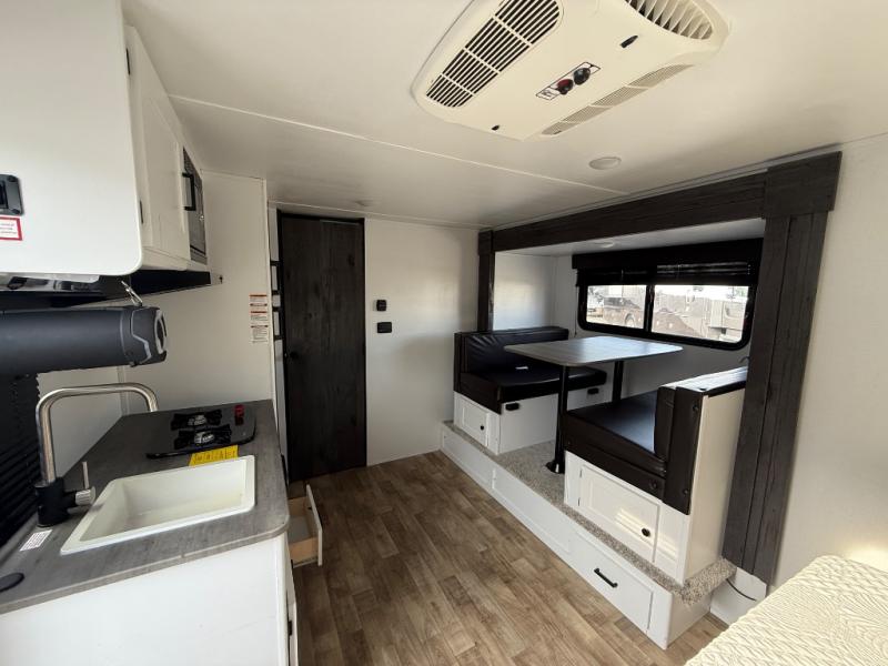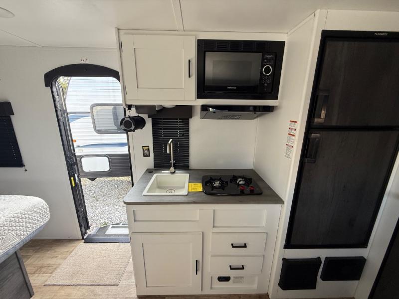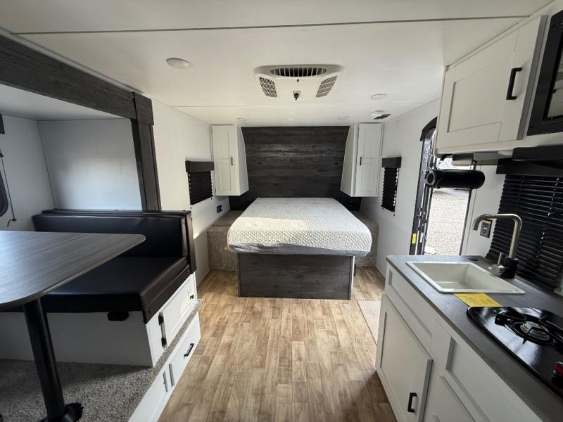 It's time to enjoy the great outdoors with family and friends at the campgrounds you like to meet everyone at! This trailer will allow three to four to camp comfortability with amenities such as a two burner gas range, a microwave, a 6 cu. ft. refrigerator and a spacious rear full bathroom. The booth dinette slide offers a place to dine, read a book and even provides sleeping space and drawers for storage. The slide gives the interior more floor space as well. And the walk-around queen-size bed has two nightstands and closets for storage.