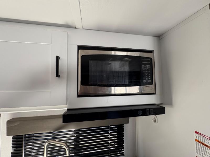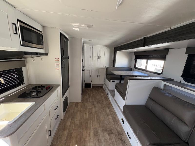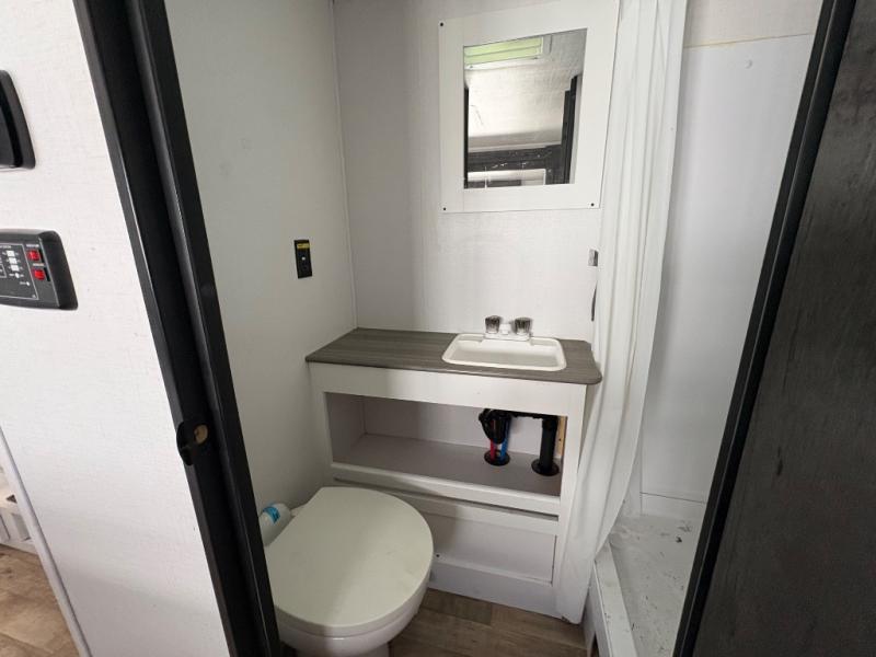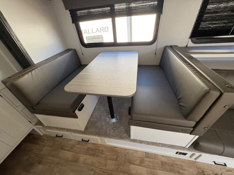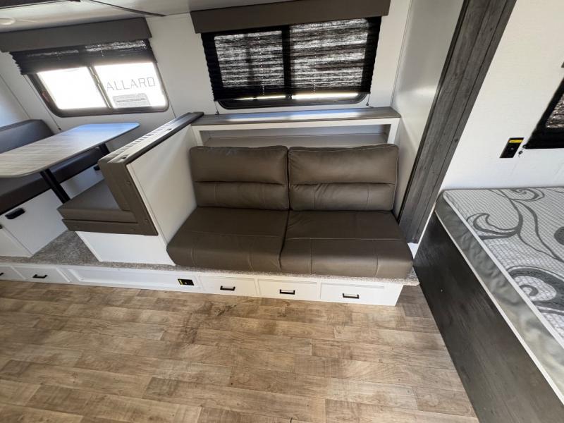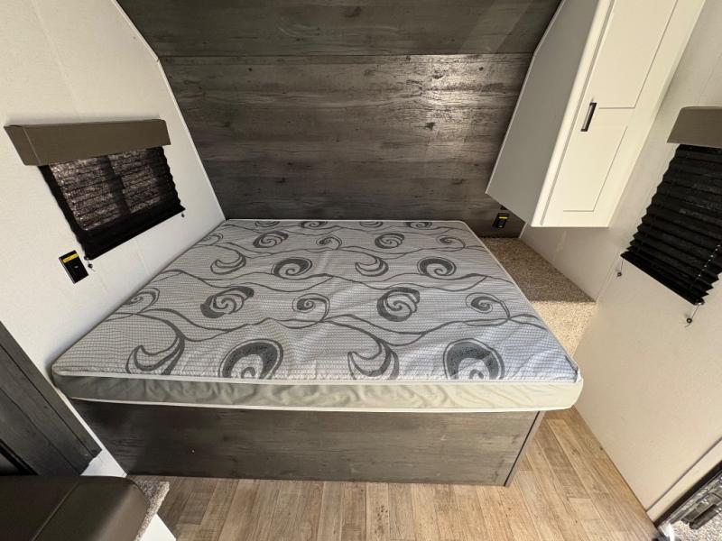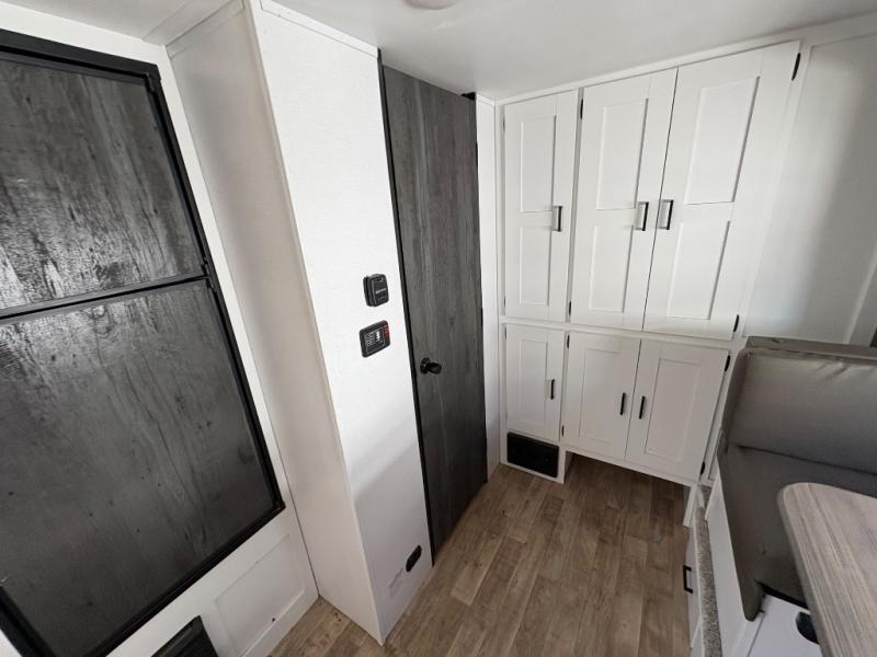 Looking for a spacious interior in your next RV to relax and unwind, yet isn't so big you can't park it in your driveway? This trailer offers just that with a large slide out which includes a booth dinette and a jackknife sofa with a countertop behind to place your cellphones and drinks on. You will also find storage drawers below, and there is a large pantry/wardrobe along the rear wall for all your goodies and such. The corner full bathroom provides a walk-in shower for easy entry when getting cleaned up after a hike. The cook will love the galley kitchen with a two burner gas range and microwave, plus a 6 cu. ft. refrigerator. And the queen-size bed will allow you to sleep like you are at home.