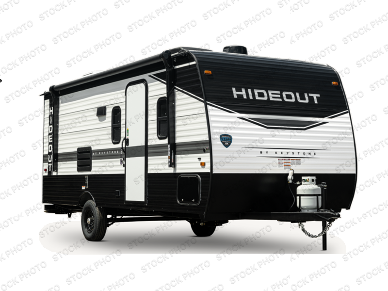 With any Keystone Hideout Single Axle travel trailer, there is an aluminum exterior allowing each to be lightweight for easy towing, the SolarFlex 200 so you can camp off-grid, tinted safety glass windows, and LCI SolidStep entry steps for stability when entering and exiting. The interior is light and airy, and includes a furnace, bedside outlets, blackout night shades, and more. You will also appreciate the Keystone exclusives such as the color-coded unified wiring, the 4G LTE and Wi-Fi prep, the Tuf-Lok thermoplastic duct joiners, the in-floor heating ducts, and the Tru-Fit slide construction.