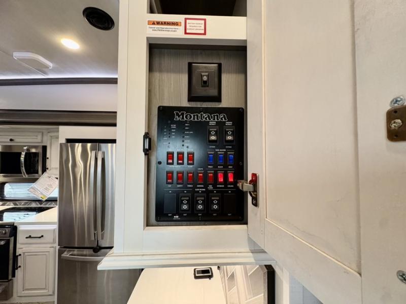 Take charge of how you camp in one of these luxurious Keystone RV Montana fifth wheels! The high quality SolarFlex 200 delivers an affordable solar energy system that eliminates the guesswork and can be built on to meet your exact needs. Keystone's exclusive 12" I-beam chassis with z-frame technology has been reengineered to be stronger, lighter and built for "the long haul". A few other construction features you will appreciate include a Road Armor suspension, 2" thick CNC routed, dual-layered lauan high gloss fiberglass sidewalls, a MaxTurn front cap with KeyShield automotive-grade paint, and a fully walkable roof with an Alpha seamless TPO membrane system. Their strikingly stylish interiors are designed with beautiful maple hardwood cabinetry, a pull-down spice rack, and an indoor/outdoor central vacuum, plus a Blade Pure airflow system for clean, quite, and cool air!