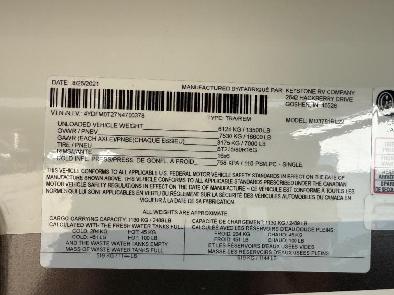 Used 2022 Keystone RV Montana 3781RL Fifth Wheel