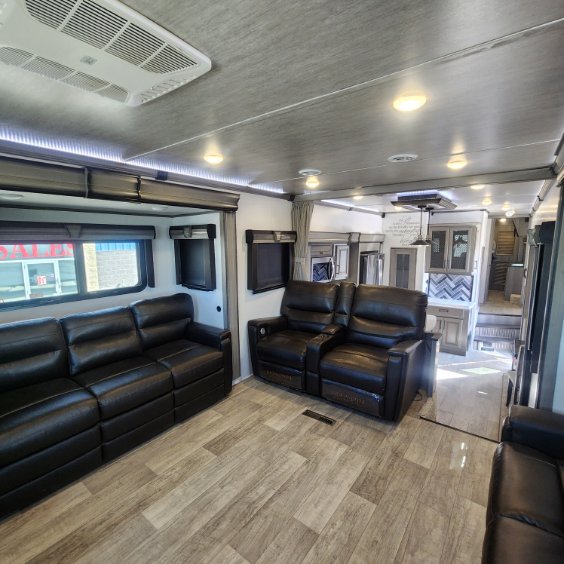 Take charge of how you camp in one of these luxurious Keystone RV Montana fifth wheels! The high quality SolarFlex 200 delivers an affordable solar energy system that eliminates the guesswork and can be built on to meet your exact needs. Keystone's exclusive 12" I-beam chassis with z-frame technology has been reengineered to be stronger, lighter and built for "the long haul". A few other construction features you will appreciate include a Road Armor suspension, 2" thick CNC routed, dual-layered lauan high gloss fiberglass sidewalls, a MaxTurn front cap with KeyShield automotive-grade paint, and a fully walkable roof with an Alpha seamless TPO membrane system. Their strikingly stylish interiors are designed with beautiful maple hardwood cabinetry, a pull-down spice rack, and an indoor/outdoor central vacuum, plus a Blade Pure airflow system for clean, quite, and cool air!