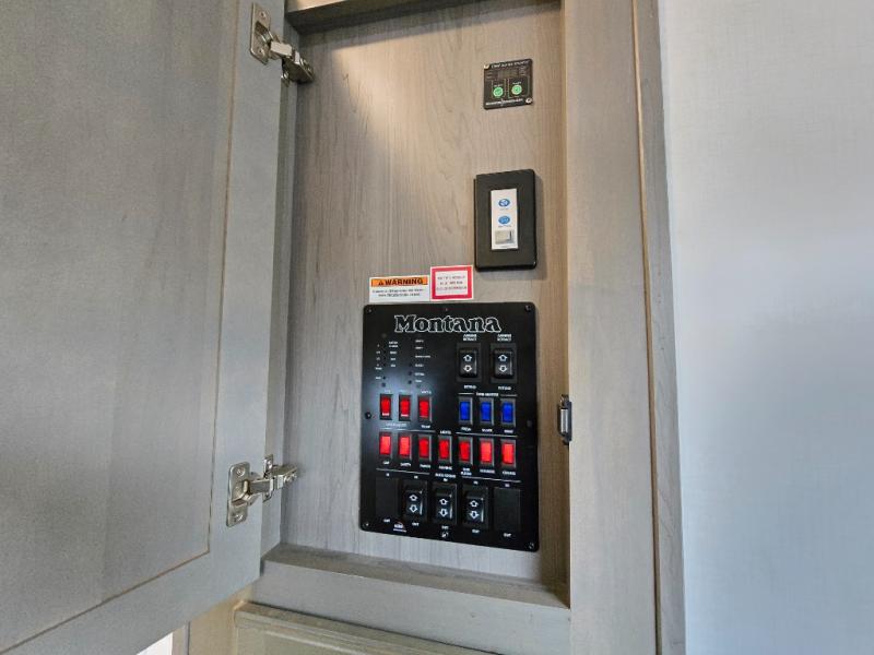Take charge of how you camp in one of these luxurious Keystone RV Montana fifth wheels! The high quality SolarFlex 200 delivers an affordable solar energy system that eliminates the guesswork and can be built on to meet your exact needs. Keystone's exclusive 12" I-beam chassis with z-frame technology has been reengineered to be stronger, lighter and built for "the long haul". A few other construction features you will appreciate include a Road Armor suspension, 2" thick CNC routed, dual-layered lauan high gloss fiberglass sidewalls, a MaxTurn front cap with KeyShield automotive-grade paint, and a fully walkable roof with an Alpha seamless TPO membrane system. Their strikingly stylish interiors are designed with beautiful maple hardwood cabinetry, a pull-down spice rack, and an indoor/outdoor central vacuum, plus a Blade Pure airflow system for clean, quite, and cool air!