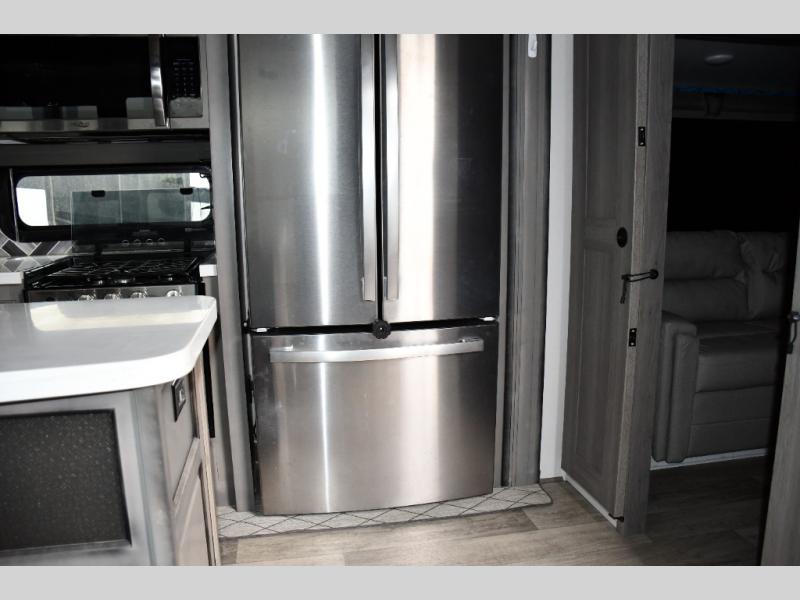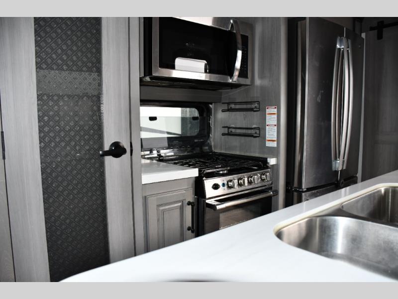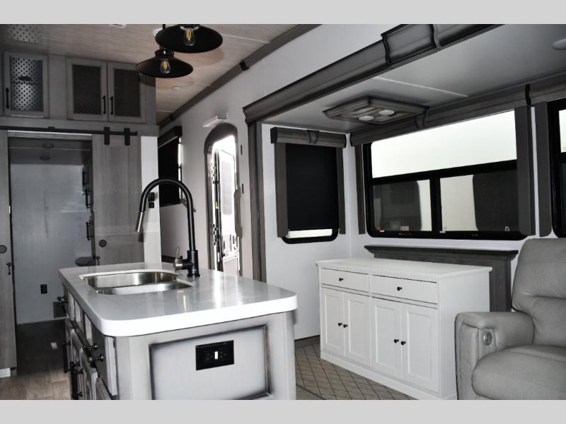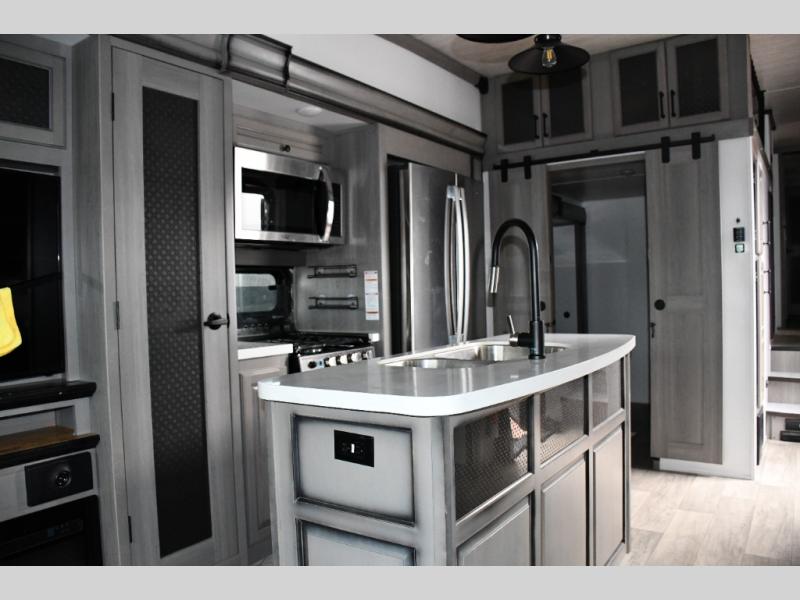 Inside, you’ll love the maple hardwood cabinetry, pull-down spice rack, indoor/outdoor central vacuum, and residential finishes that make this Montana feel like a true home on wheels.