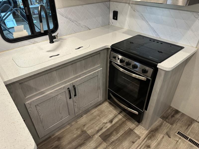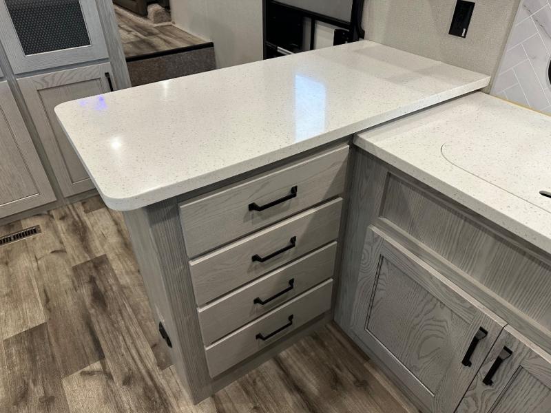 Live the high life with a Keystone Montana High Country fifth wheel! You'll have all the luxury you need with these units. They come with a Road Armor™ shock absorbing hitch pin, a MaxTurn™ front cap with KeyShield™ automotive-grade paint, a fully walkable roof with Alpha seamless TPO membrane system, and an insulated underbelly with forced hot air and electric tank heaters. The Road Armor™ suspension has 360° vibration control for a smooth ride, and the Ground Control® four-point electric auto-leveling with hitch memory will make set-up quite easy. The interior is elegantly appointed with the Thomas Payne Collection furniture, hardwood decorative slide-out fascia, Beauflor® vinyl throughout with Syntec® woven flooring in main slide outs, accent crown molding, and Mystic Ash cabinetry. You'll also have a central vacuum that you can use to clean up unforeseen messes.