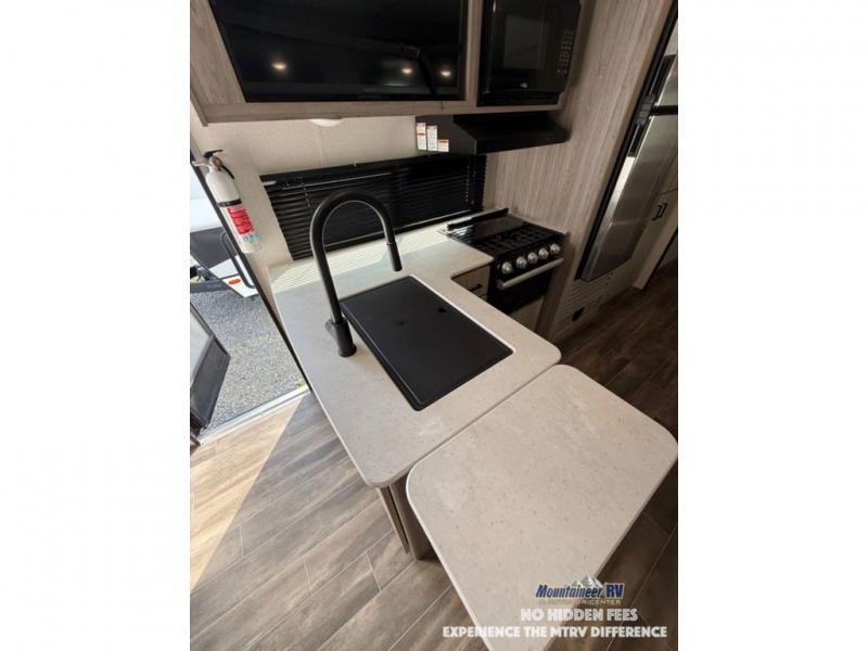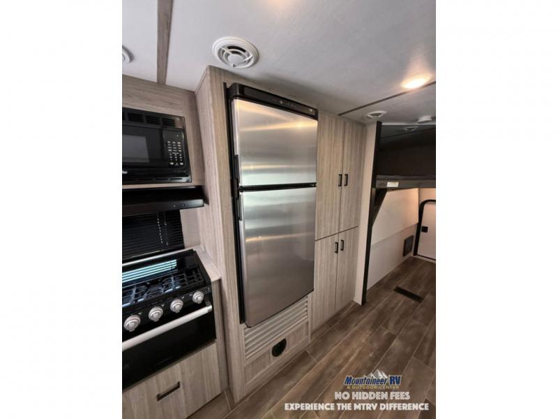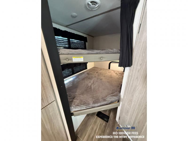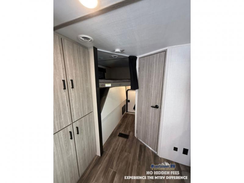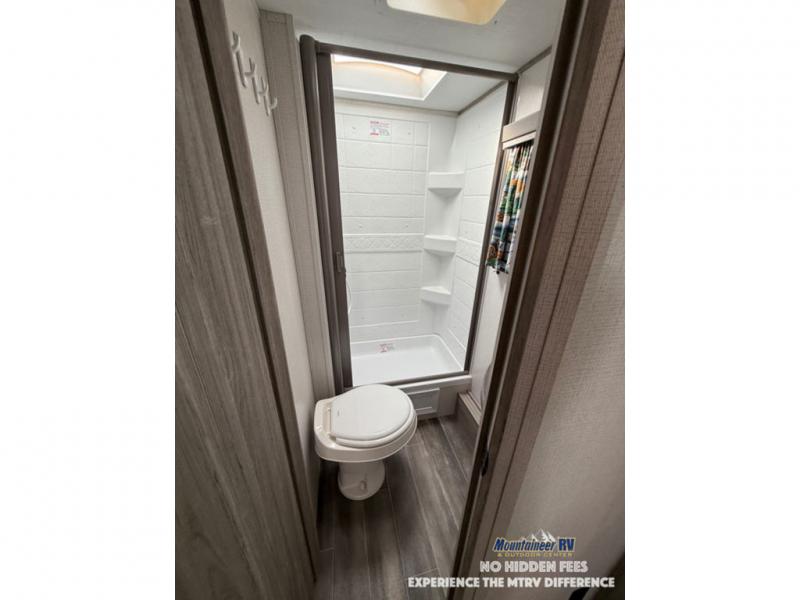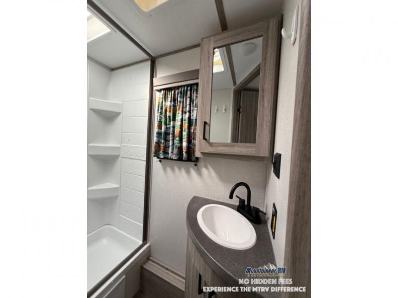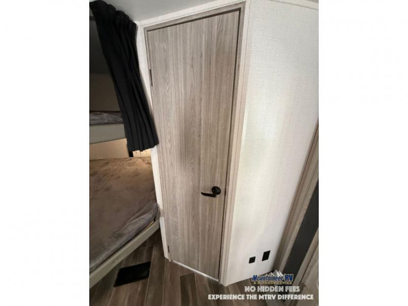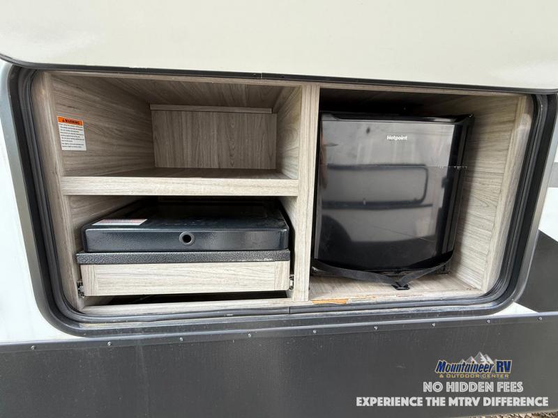 The Passport SL travel trailers by Keystone RV come in a compact design with travel-friendly lengths that are lightweight and easy to tow behind many smaller crossover SUVs. You will find several residential-style features such as durable Armstrong vinyl flooring, upgraded window treatments and valances, and bathroom countertops. The exterior shower with hot and cold water is very useful as you get cleaned up before entering the RV, wash your pets, or even rinse a few dishes outside. The Passport also now contains a HyperDeck flooring system which is a high-performance, water-resistant RV floor that comes as a breakthrough design from the Keystone Innovation Lab. This flooring is more resilient, stronger, and lighter than traditional laminated wood construction.