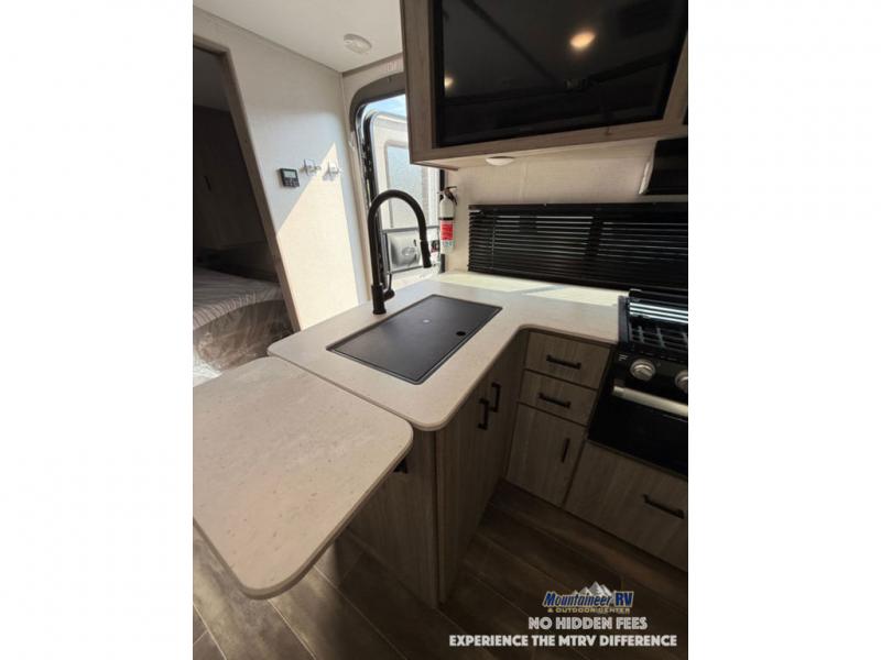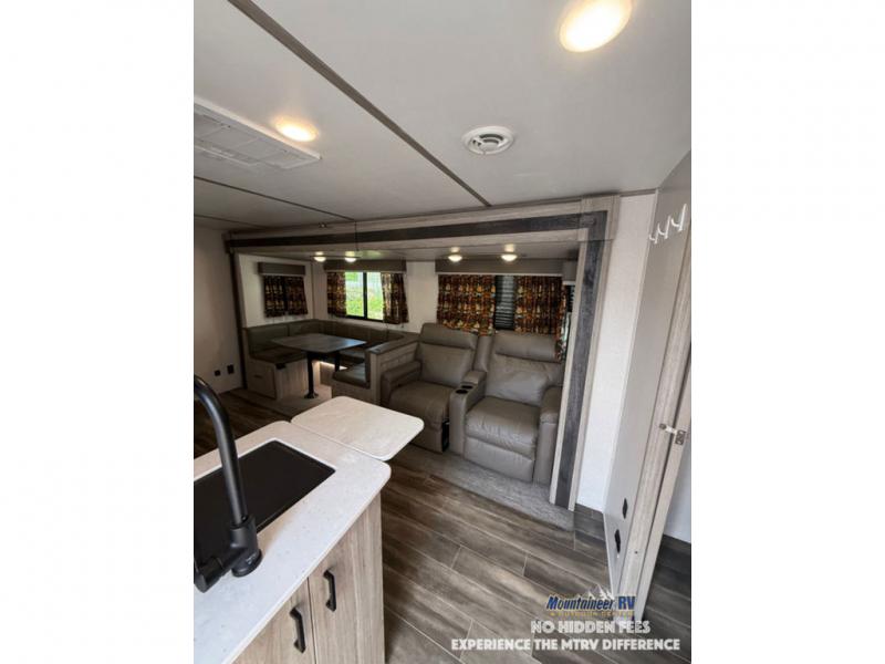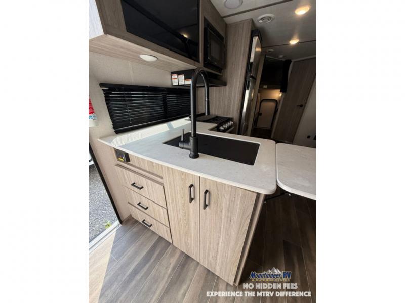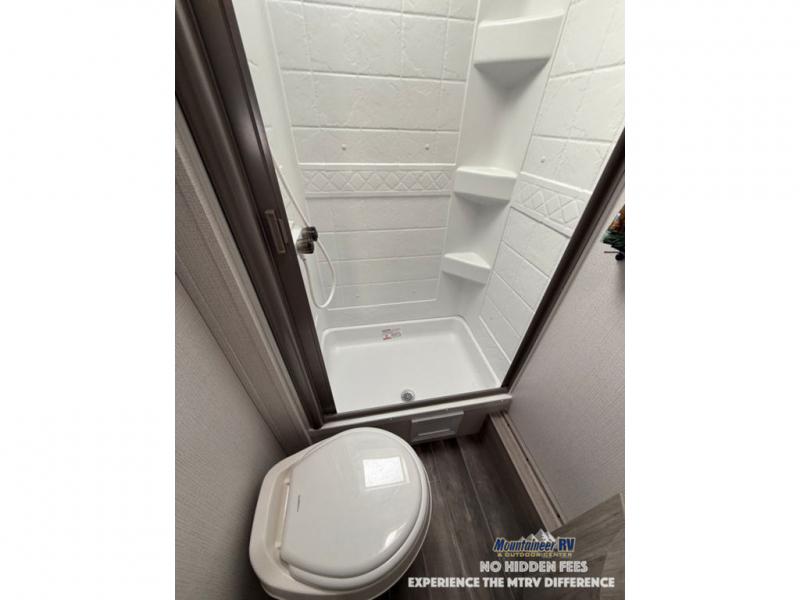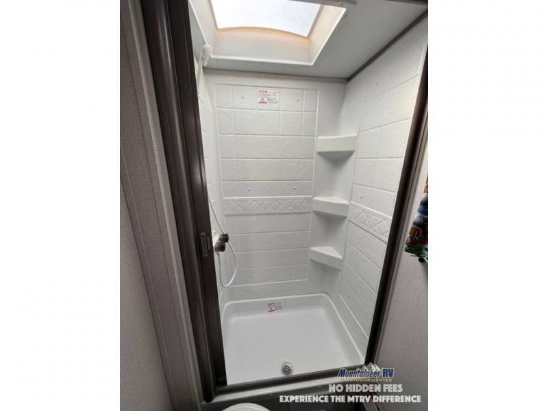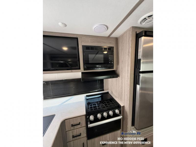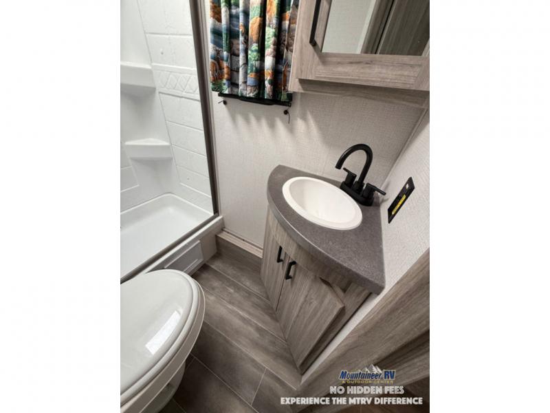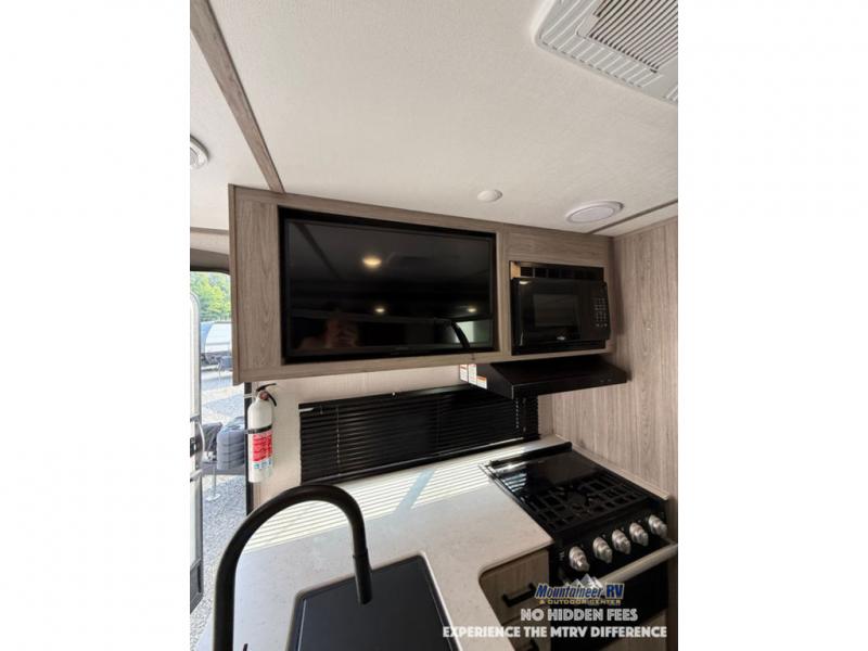 The Passport SL travel trailers by Keystone RV come in a compact design with travel-friendly lengths that are lightweight and easy to tow behind many smaller crossover SUVs. You will find several residential-style features such as durable Armstrong vinyl flooring, upgraded window treatments and valances, and bathroom countertops. The exterior shower with hot and cold water is very useful as you get cleaned up before entering the RV, wash your pets, or even rinse a few dishes outside. The Passport also now contains a HyperDeck flooring system which is a high-performance, water-resistant RV floor that comes as a breakthrough design from the Keystone Innovation Lab. This flooring is more resilient, stronger, and lighter than traditional laminated wood construction.