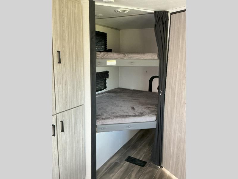 • Double-Size Bunks with Flip-Up Lower Bunk – The kids get their own cozy corner, and the flip-up lower bunk provides extra gear space when traveling
