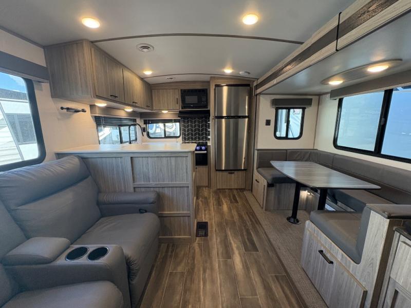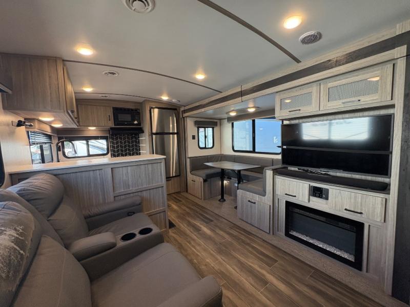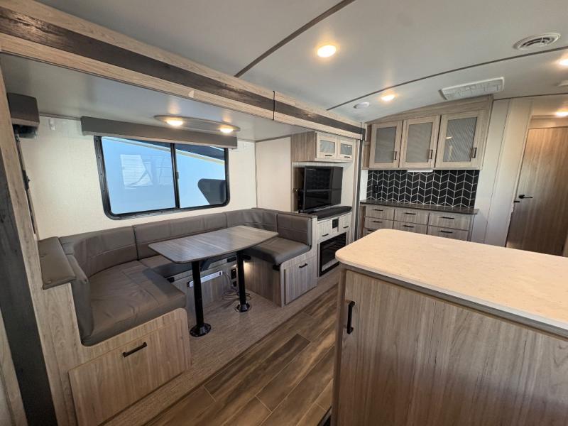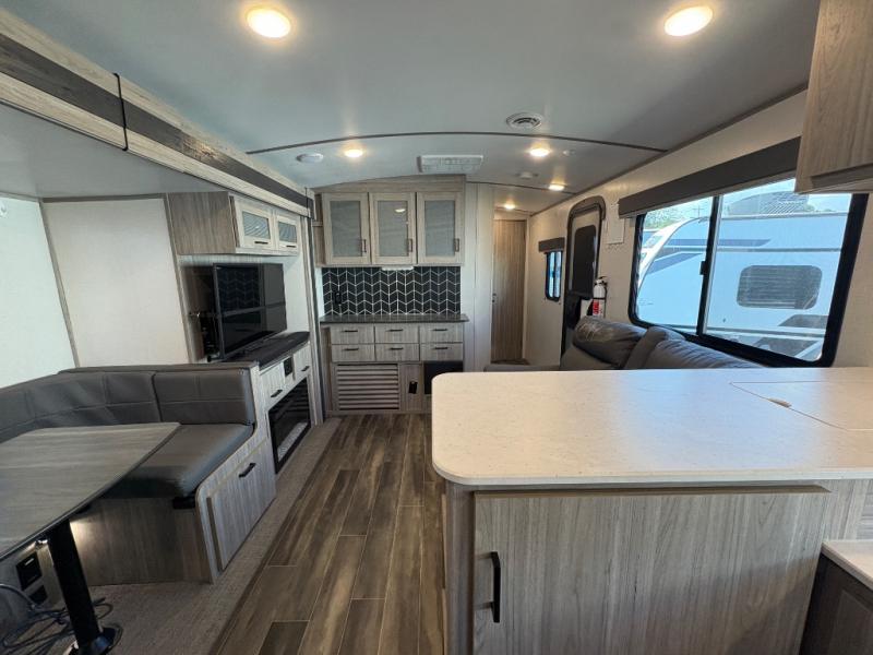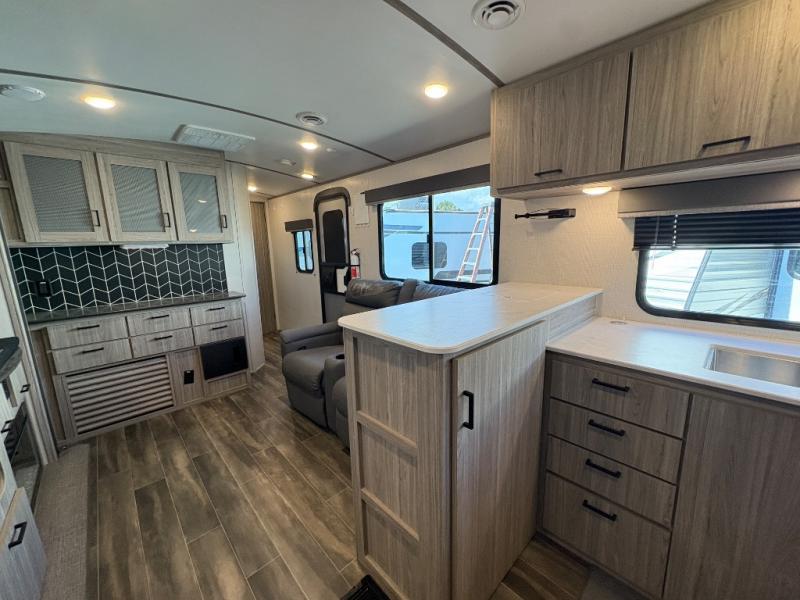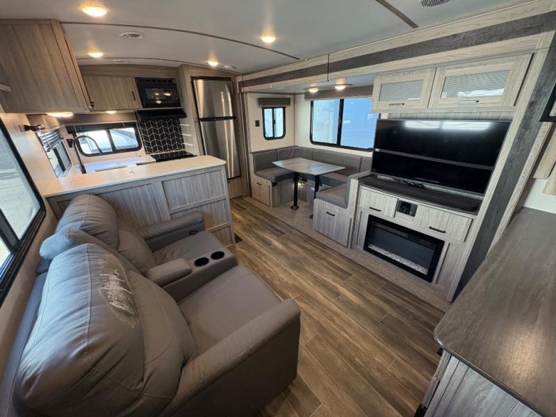 The Passport GT 2704RK combines comfort, functionality, and durability in one stylish package. With a spacious rear kitchen, theater seating, and a cozy fireplace, this travel trailer feels like home on the road. Add in the front private bedroom, outside kitchen, and Keystone’s smart storage solutions, and you’ve got the perfect setup for both weekend getaways and extended adventures.