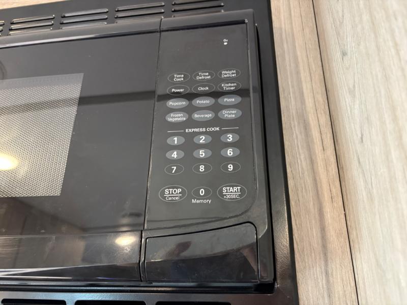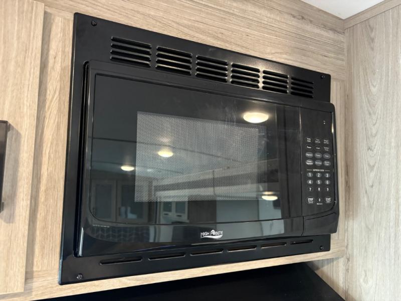 - 10 cu. ft. refrigerator, microwave, and three-burner range with oven