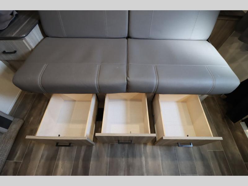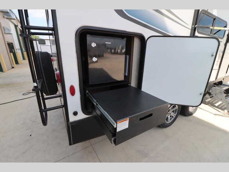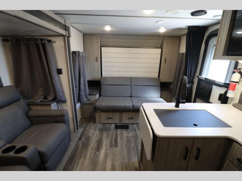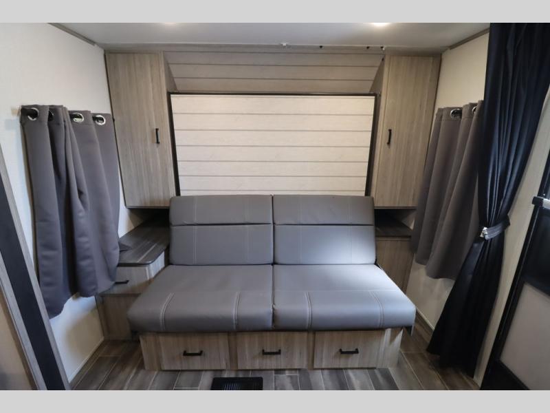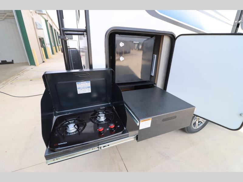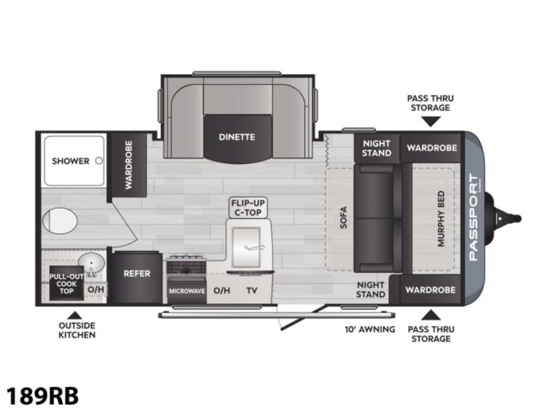 This Passport SL travel trailer is your ticket to paradise! It has a functional living space since both the U-shaped dinette and Murphy bed can reposition whenever needed, and when you put away the Murphy bed, you'll find that there is a sofa in its place. You could even switch out the dinette for an optional theater dinette. Just outside the rear bathroom is a large wardrobe so that you can keep your toiletries stored close to the bathroom. Not only does this trailer have a full indoor kitchen, but it also offers you an outdoor kitchen with a pull-out cooktop so that you can enjoy some sunshine while you cook.