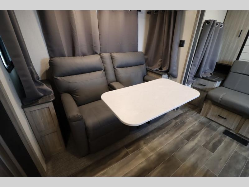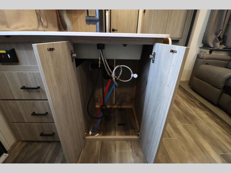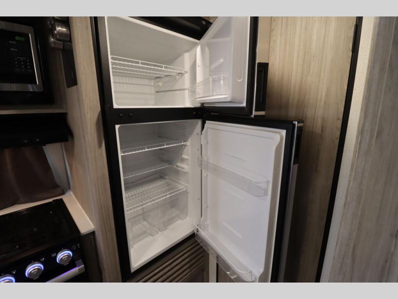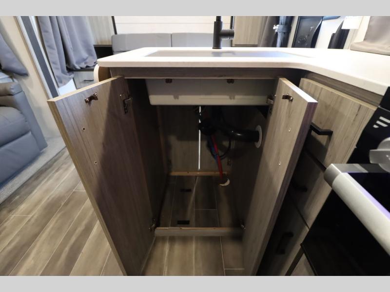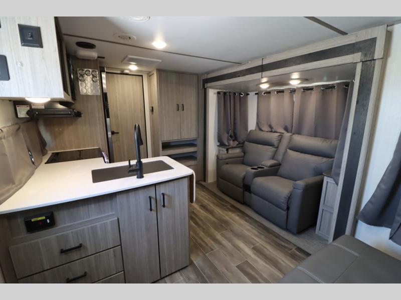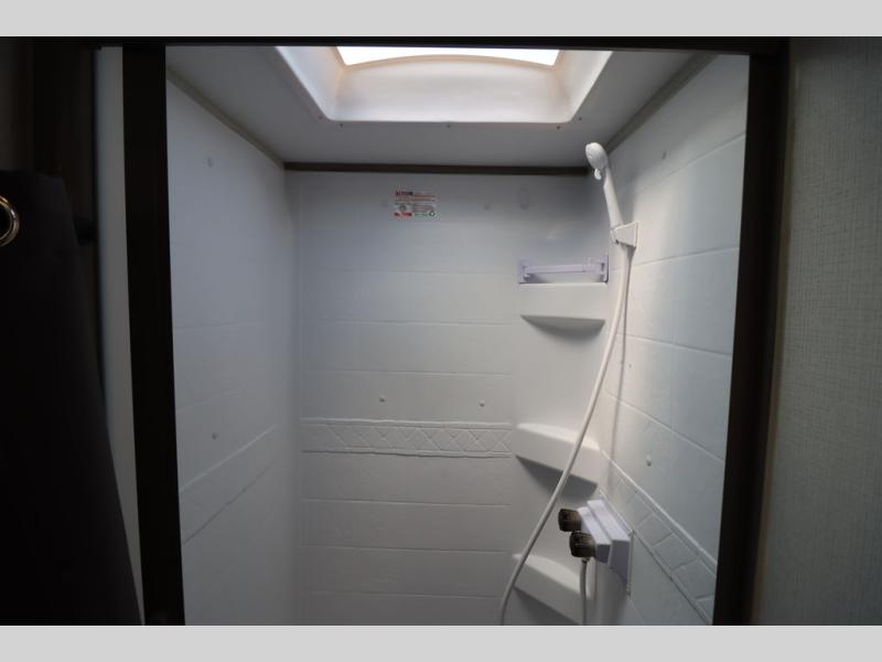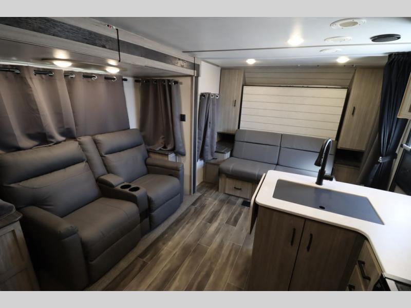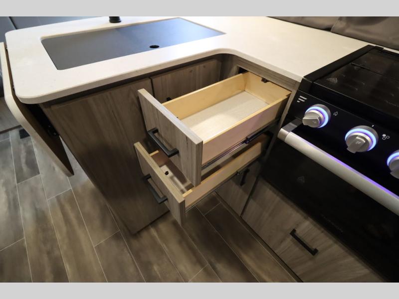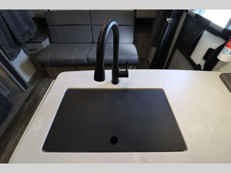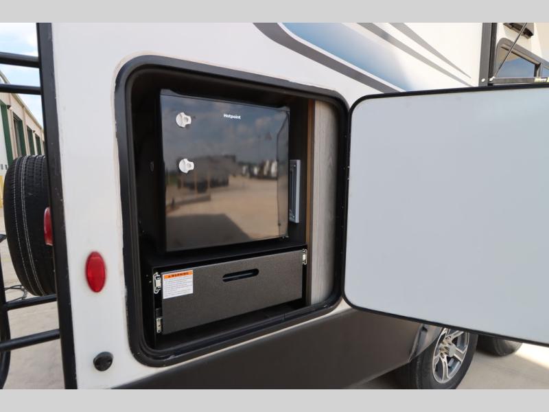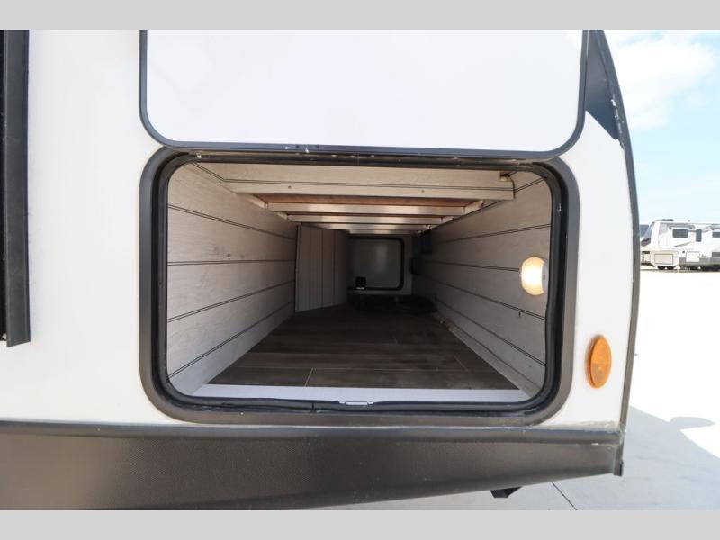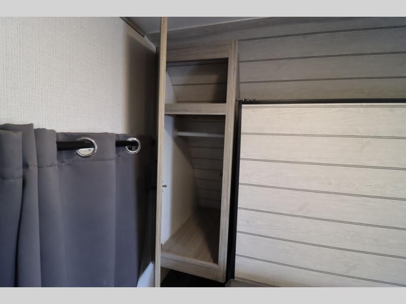 The Passport SL travel trailers by Keystone RV come in a compact design with travel-friendly lengths that are lightweight and easy to tow behind many smaller crossover SUVs. You will find several residential-style features such as durable Armstrong vinyl flooring, upgraded window treatments and valances, and bathroom countertops. The exterior shower with hot and cold water is very useful as you get cleaned up before entering the RV, wash your pets, or even rinse a few dishes outside. The Passport also now contains a HyperDeck flooring system which is a high-performance, water-resistant RV floor that comes as a breakthrough design from the Keystone Innovation Lab. This flooring is more resilient, stronger, and lighter than traditional laminated wood construction.