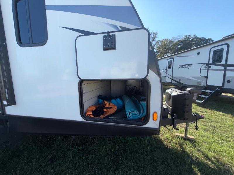 The Passport SL travel trailers by Keystone RV come in a compact design with travel-friendly lengths that are lightweight and easy to tow behind many smaller crossover SUVs. You will find several residential-style features such as durable Armstrong vinyl flooring, upgraded window treatments and valances, and bathroom countertops. The exterior shower with hot and cold water is very useful as you get cleaned up before entering the RV, wash your pets, or even rinse a few dishes outside. The Passport also now contains a HyperDeck flooring system which is a high-performance, water-resistant RV floor that comes as a breakthrough design from the Keystone Innovation Lab. This flooring is more resilient, stronger, and lighter than traditional laminated wood construction.