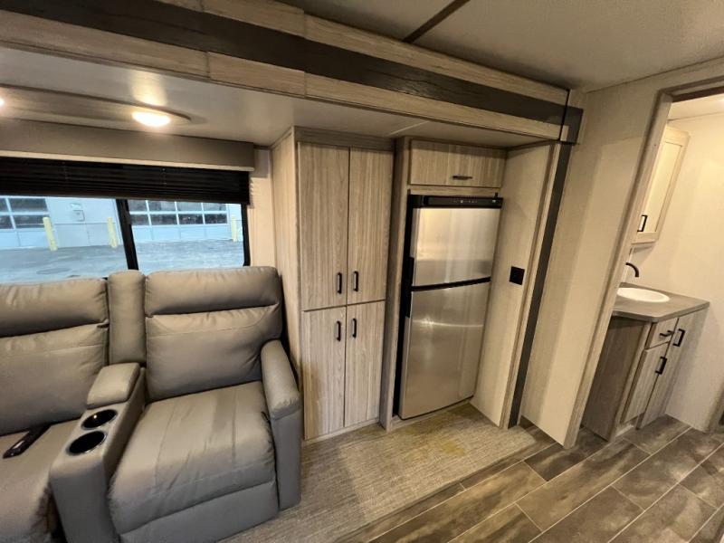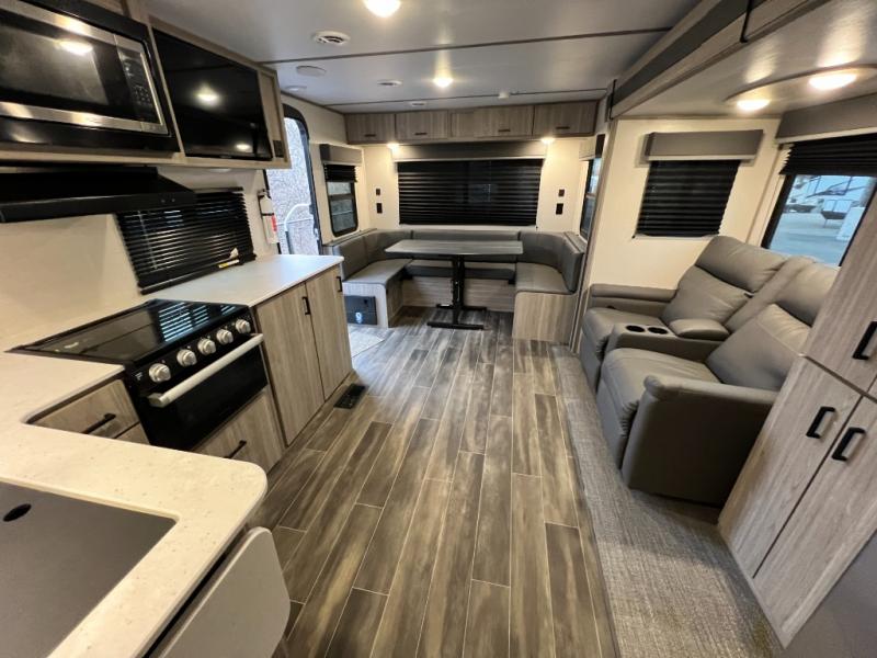 The Passport SL travel trailers by Keystone RV come in a compact design with travel-friendly lengths that are lightweight and easy to tow behind many smaller crossover SUVs. You will find several residential-style features such as durable Armstrong vinyl flooring, upgraded window treatments and valances, and bathroom countertops. The exterior shower with hot and cold water is very useful as you get cleaned up before entering the RV, wash your pets, or even rinse a few dishes outside. The Passport also now contains a HyperDeck flooring system which is a high-performance, water-resistant RV floor that comes as a breakthrough design from the Keystone Innovation Lab. This flooring is more resilient, stronger, and lighter than traditional laminated wood construction.