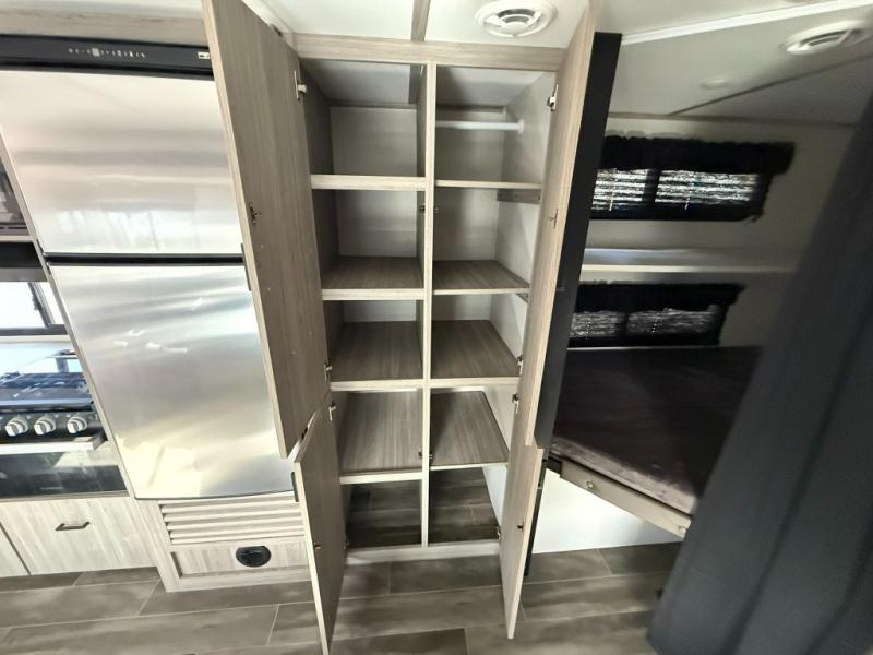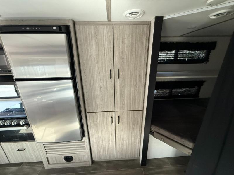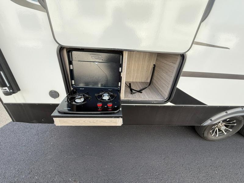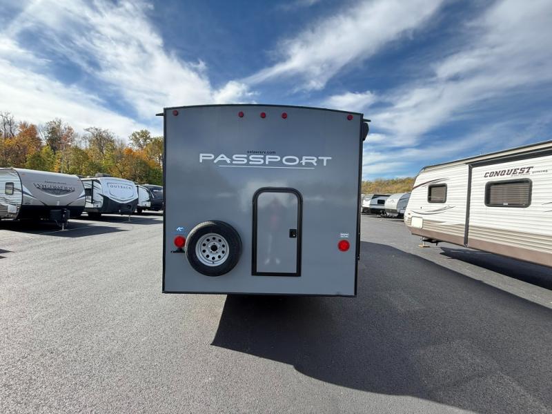 Let your days turn into weeks and your weeks turn into months with this Passport SL travel trailer! You can keep all of your gear stored effortlessly in the rear cargo door and the front pass-through storage compartment, and the interior also offers some storage space with the bedside wardrobes and large kitchen pantry or utilize this space as a wardrobe. You also have plenty of space to keep your perishable foods from spoiling with the interior 8-cubic foot refrigerator and in the exterior refrigerator in the outside kitchen. The tri-fold sofa sleeper and U-shaped dinette will provide you with some extra sleeping space so that you can invite friends or family to join you, and the full bathroom is going to keep everyone clean. You can also choose to add the optional Pivot furniture in place of the dinette and sofa or optional theater seats.