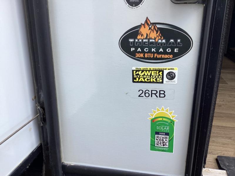 Inside, you’ll appreciate the open living zone where space and style meet — generous slide-outs expand your lounge and dining areas, the kitchen features solid surfaces and full-size appliances, and the rear bathroom gives ample room to refresh and reset. The private front bedroom offers a cozy retreat at day’s end. Built with Keystone’s lightweight and durable design approach, this 26RBPR gives you premium quality in a towable package.