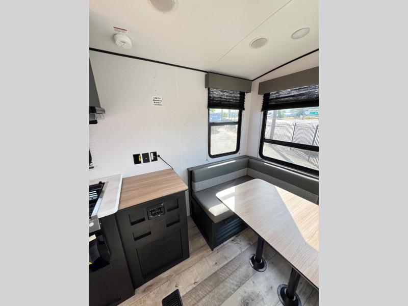 With any Keystone Springdale travel trailer, you will have a friction hinge entry door with sturdy LCI SolidStep steps, a pass-through storage compartment for your outdoor gear, and reliable Dexter E-Z Lube axles to maneuver your Springdale down the road and into the campsites. Some of the Keystone Exclusives provide 12V color-coded wiring with easy-to-trace circuits which is better than conventional RV wiring allowing a faster diagnosis for quicker repairs, and the streamlined heat distribution that uses in-floor heat vents for more efficiency for uninterrupted air flow. Also included, the Blade high performance air flow system that delivers 30% more air flow. The interior gives you pressed kitchen countertops, pleated night shades, and designer upholstered window valances for easy care and style, and more depending on the Springdale you choose!