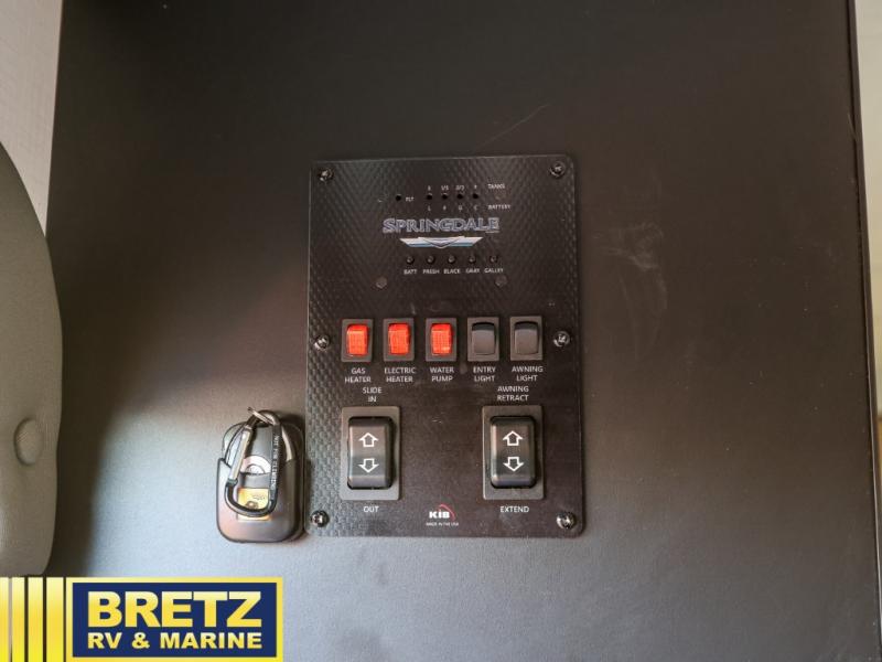With any Keystone Springdale travel trailer, you will have a friction hinge entry door with sturdy LCI SolidStep steps, a pass-through storage compartment for your outdoor gear, and reliable Dexter E-Z Lube axles to maneuver your Springdale down the road and into the campsites. Some of the Keystone Exclusives provide 12V color-coded wiring with easy-to-trace circuits which is better than conventional RV wiring allowing a faster diagnosis for quicker repairs, and the streamlined heat distribution that uses in-floor heat vents for more efficiency for uninterrupted air flow. Also included, the Blade high performance air flow system that delivers 30% more air flow. The interior gives you pressed kitchen countertops, pleated night shades, and designer upholstered window valances for easy care and style, and more depending on the Springdale you choose!
