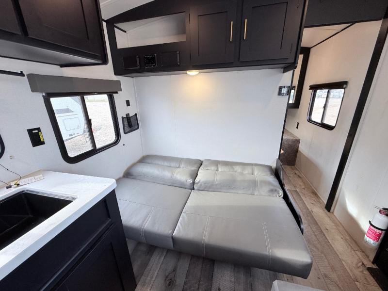 You are sure to love this Keystone Springdale travel trailer from the front private bedroom to the many different storage spaces for all of your camping needs! This trailer is fabulous for a larger group because it has a set of double-size bunks which will provide compact yet accommodating sleeping arrangements for your kids or friends. There is also a convenient full bathroom located next to the bunks which is super convenient, and allows everyone to get cleaned up before bedtime. You can enjoy your delicious meals at the booth dinette or even while relaxing on the sofa, and both of these can transform into extra sleeping spaces whenever needed.