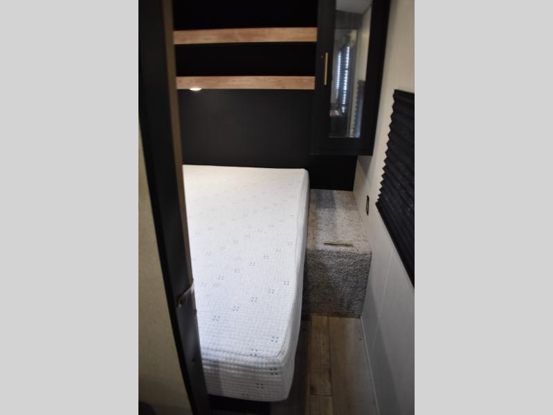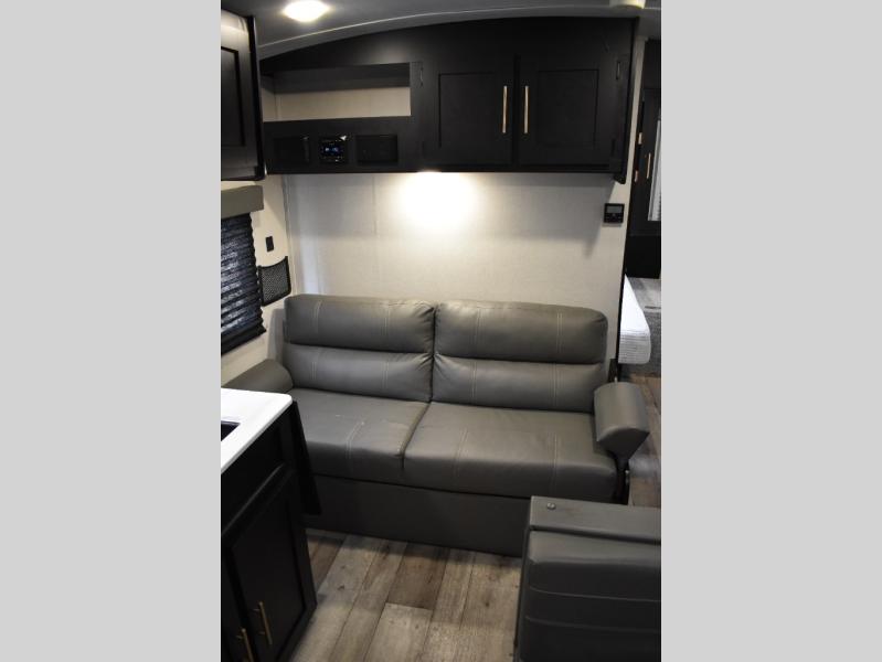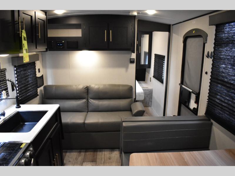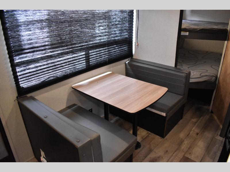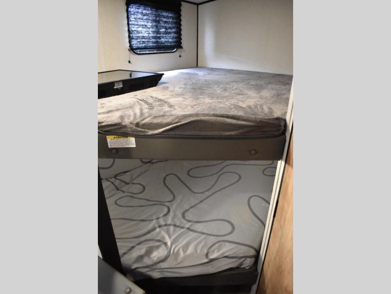 You are sure to love this Keystone Springdale travel trailer from the front private bedroom to the many different storage spaces for all of your camping needs! This trailer is fabulous for a larger group because it has a set of double-size bunks which will provide compact yet accommodating sleeping arrangements for your kids or friends. There is also a convenient full bathroom located next to the bunks which is super convenient, and allows everyone to get cleaned up before bedtime. You can enjoy your delicious meals at the booth dinette or even while relaxing on the sofa, and both of these can transform into extra sleeping spaces whenever needed.