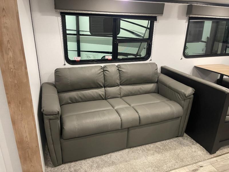 You will have plenty of room for hosting and sleeping up to nine individuals throughout your vacation in this travel trailer. There is a queen bed in the front private bedroom, double-size bunks in the rear, plus a sofa and a booth dinette slide out that folds down so that you can have extra sleeping space. You will have places for relaxing, cooking indoors or outdoors, playing games, or talking late into the night with your loved ones inside and outside. Don't be afraid to bring along as much as you want thanks to the walk-in pantry, the overhead cabinets, the dual closets in the bedroom, plus the exterior storage for your outdoor gear.