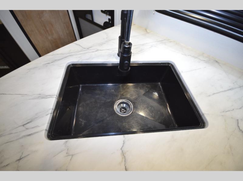 Set the stage for great campfire stories and BBQ dinners with a spacious outdoor living setup. The exterior kitchen lets you stay in the action while grilling burgers or prepping breakfast, while the large awning provides shade during the day and shelter at night. It's the perfect blend of form and function for hosting friends or enjoying quiet evenings under the stars.