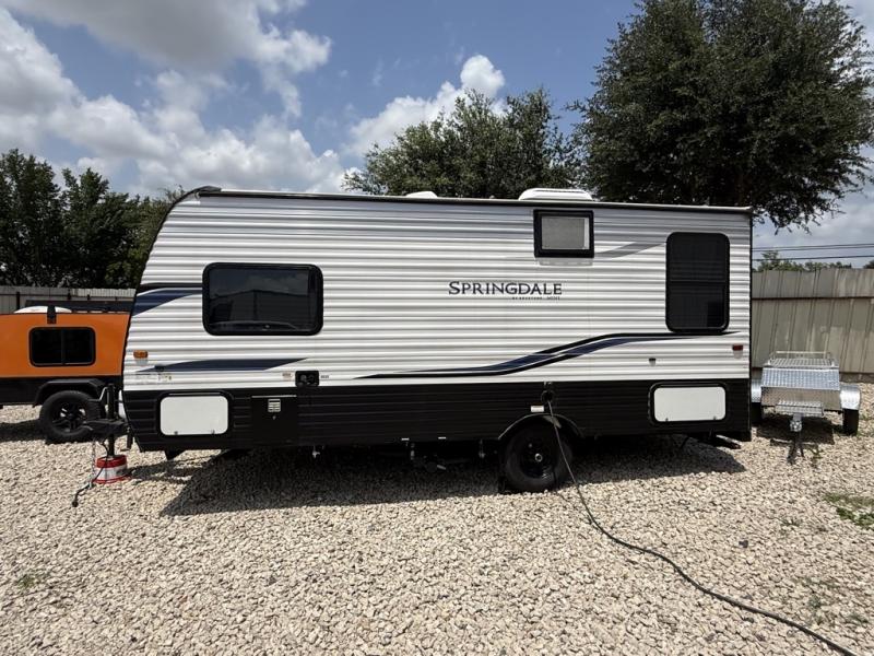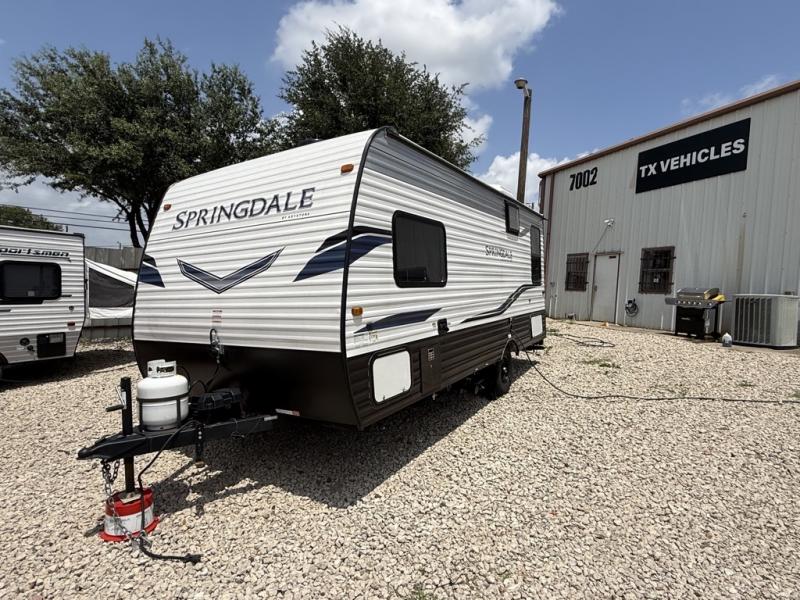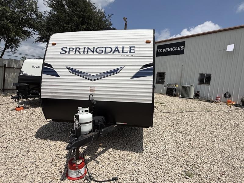 2022 KEYSTONE SPRINGDALE 202RD . 25FT length. BEST FLOOR PLAN WITH 2 SLEEPING AREAS WITH LARGE WINDOWS. NEW QUEEN SIZE MATTRESS & XL REAR DINETTE THAT CONVERTS TO A QUEEN SIZE BED. SUPER CLEAN, BIG BATHROOM WITH MULTIPLE STORAGE COMPARTMENTS. SUPER NICE FAMILY TRAILER!. DINETTE TABLE THAT CONVERTS INTO A SLEEPER FOR additional guests. STORAGE UNDERNEATH BOOTH. FULL SIZE AUTOMATIC REFRIGERATOR. ENTERTAINMENT AREA. COMFORTABLE RECLINERS. SUPER NICE! CAN SLEEP UP TO 4. 200 W FACTORY SOLAR, OUTDOOR CAMP KITCHEN. 16' AWNING. ONLY 4635 UVW. 30AMP POWER. OUR PRICE $11,995. SEVERAL SUPER NICE RVS TO CHOOSE FROM. We are located in KENNEDALE TX. We show Rv's 7 Days A WEEK BY APPOINTMENT. Call BRET 817*805*0067 or AMY 817*658*4633 DELIVERY AVAILABLE ON ALL 48 STATES. WE INSPECT & GO THROUGH ALL TRAILERS TO ENSURE OUR CUSTOMERS ARE 100% SATISFIED.