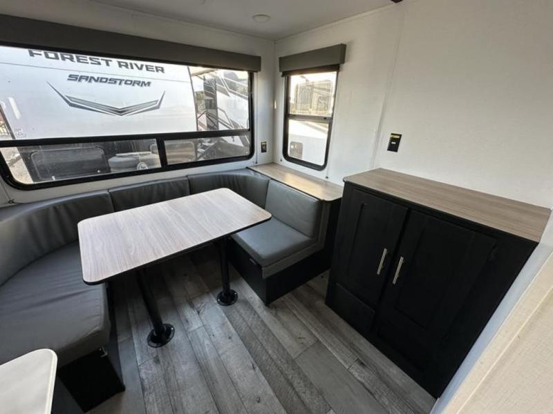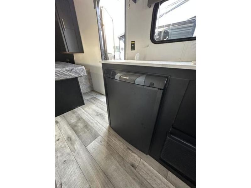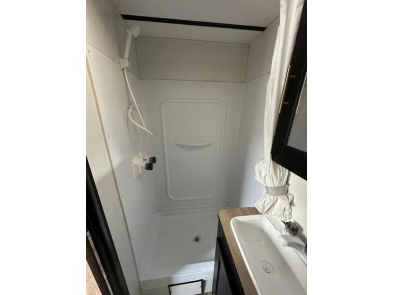You will find lots of storage inside and outside this trailer allowing you to bring along everything you need for a great camping trip! Along the exterior there are two pass-through compartments for your outdoor gear and a 10' power awning giving you a covered outdoor living area to enjoy when you aren't inside. The cook will have a two burner cooktop to make meals, and the U-shaped dinette offers great views out of the panoramic windows. There is a full bathroom to get cleaned up in before bedtime, and a queen bed to fall asleep quickly so you can have fun again tomorrow.