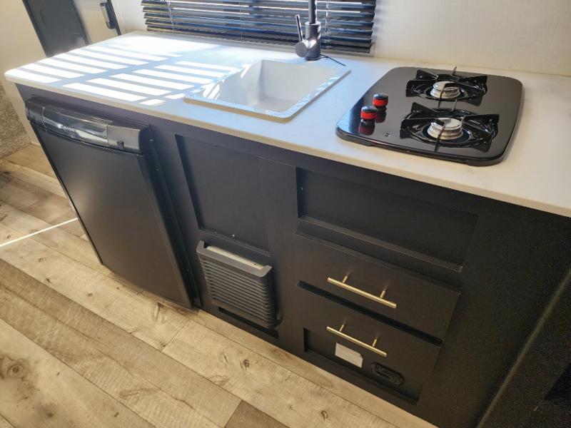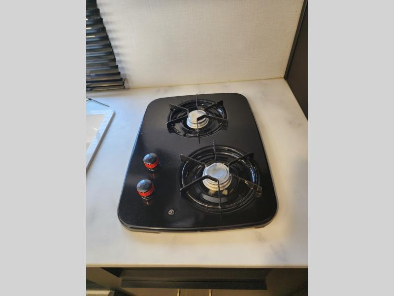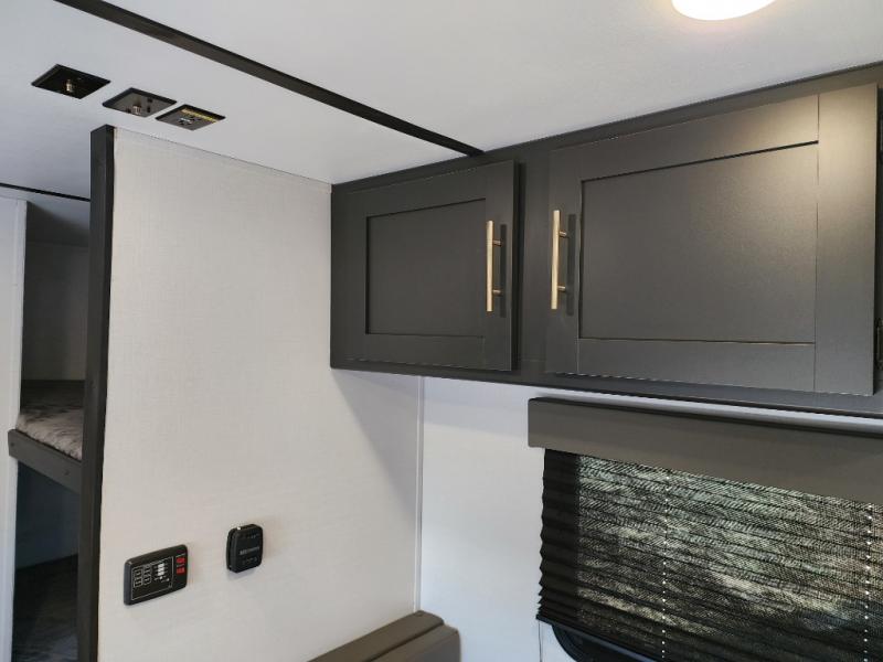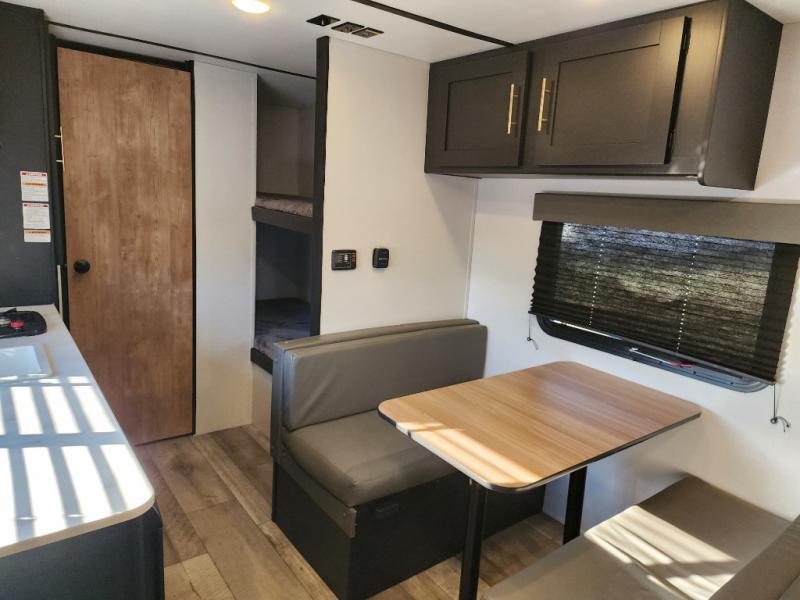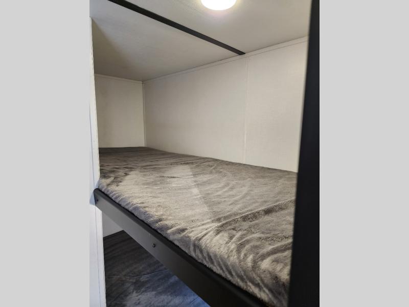 Get ready for outdoor fun with your favorite people when you have this trailer in tow! Once at your campsite, you can easily setup the 10' power awning, grab your camping chairs from the pass-through storage, and relax or start playing. The cook will love the galley kitchen with the two burner cooktop, plus the pantry and 3 cu. ft. refrigerator to stow away all the food. If you like, you can eat inside at the booth dinette which doubles as sleeping space, and of course the kids will love the bunk beds next to the full bathroom. And you will sleep like a queen up front.