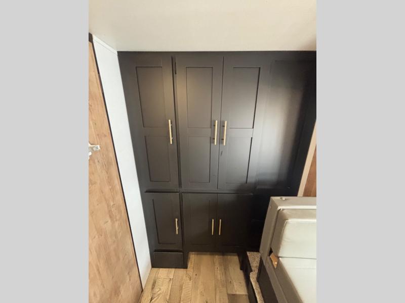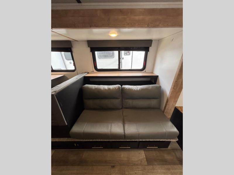 When you want to explore the outdoors and relax indoors, this trailer will provide the comforts, conveniences and many of the wants you will need to do both! The interior is spacious with the large slide out which includes a booth dinette and sofa, both with drawer storage. And the furniture doubles as sleeping space when you have overnight guests. There is a pantry/wardrobe combo next to the full bathroom which is handy, and the galley kitchen offers a 6 cu. ft. refrigerator to store the cold items. And you can sleep like a queen in the front, and keep your clothes in the closet. The exterior offers a 10' power awning plus a pass-through compartment for your outdoor camping chairs, tables, charcoal and such.