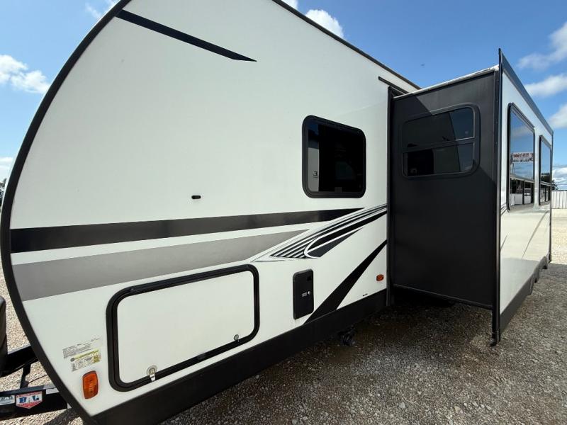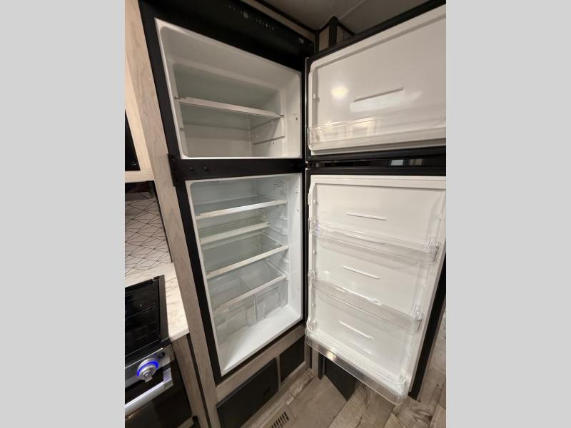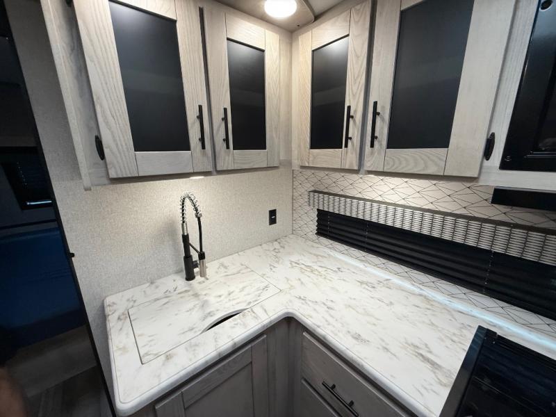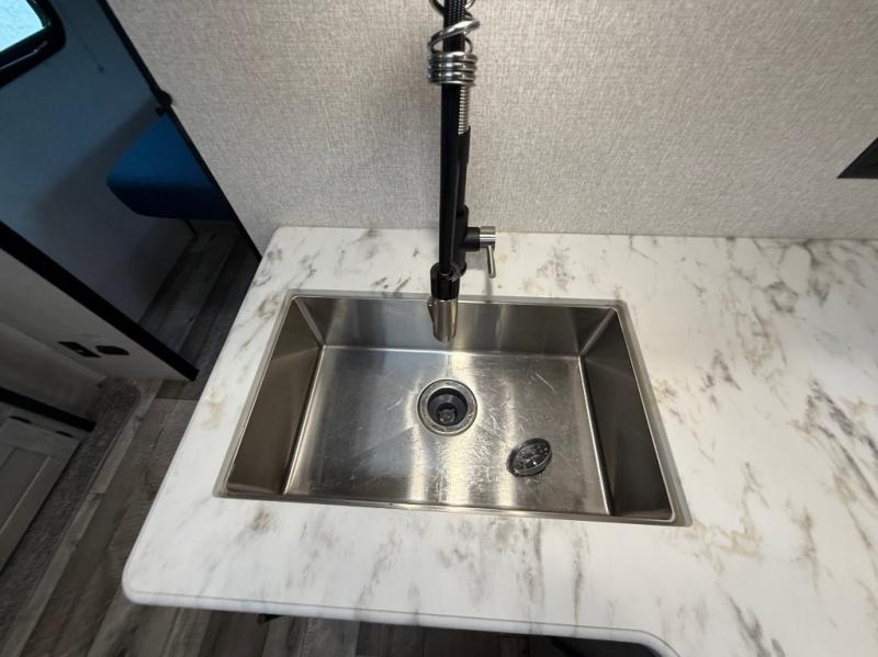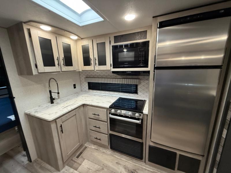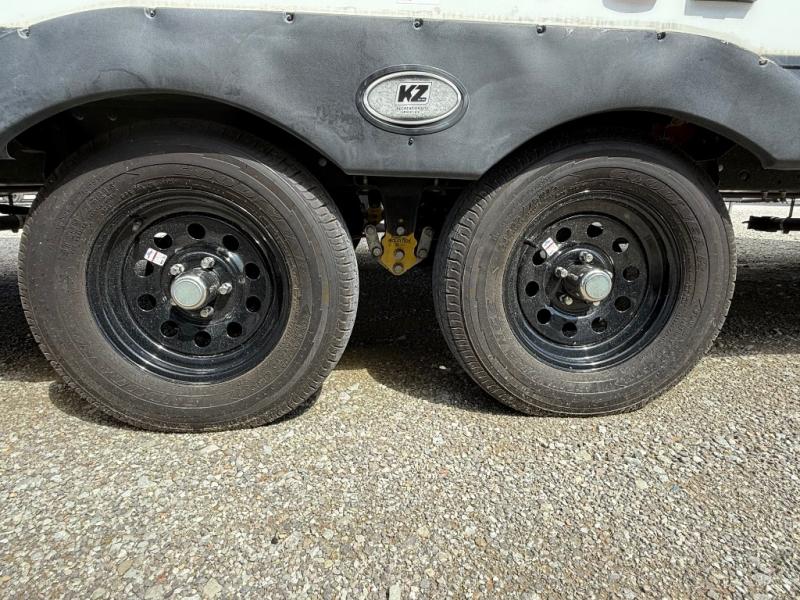 The KZ Connect travel trailer comes with an RV Airflow System which optimizes the airflow for your air conditioner by increasing the airflow by an average of 40%. This improves performance, speeds up cooling times, and reduces noise in your trailer. Some of the other helpful features found on the Connect are the heated, insulated, and enclosed underbelly, the exterior docking station, the fiberglass front cap with front windshield, the 82" interior ceiling height, and the protective front diamond plate. There are some useful technological features, like the two LED motion-sensor lights, the HDMI and USB charge, OneControl monitor panel, and the multi-media entertainment system with DVD. The KZ Engage is powered by OneControl, and it monitors battery levels and controls slide rooms, the leveling system, the awning, inside/outside lighting, and the TPMS prep.