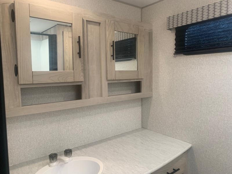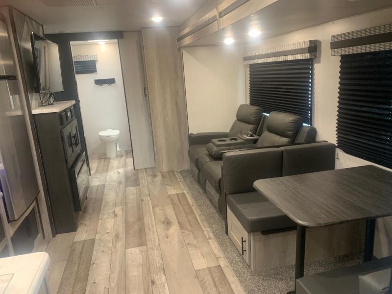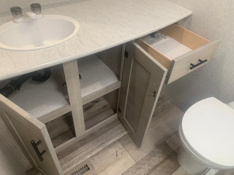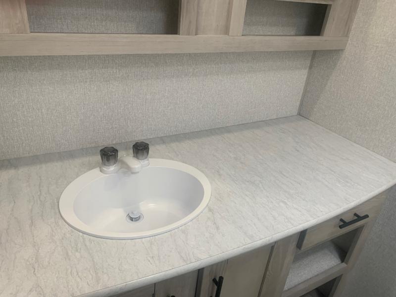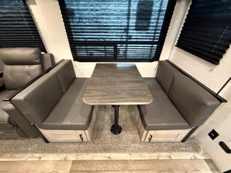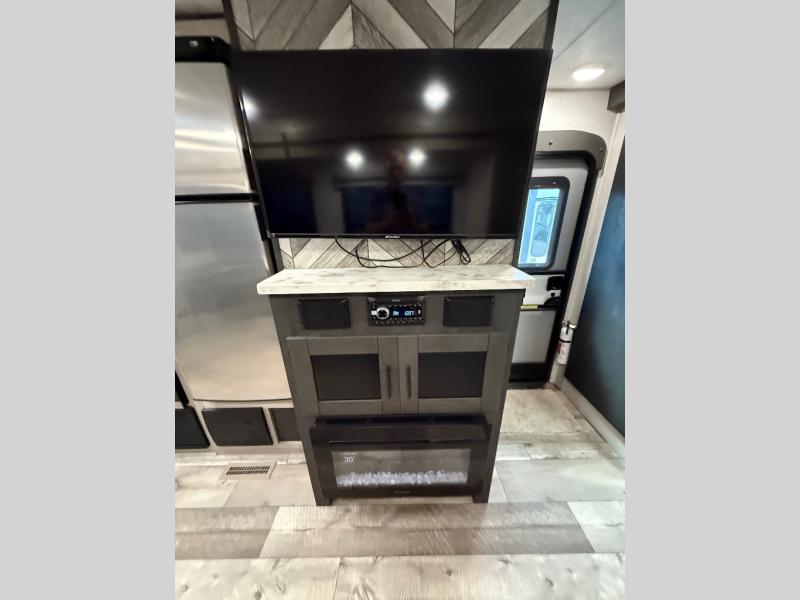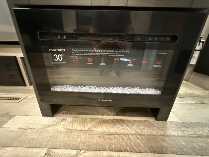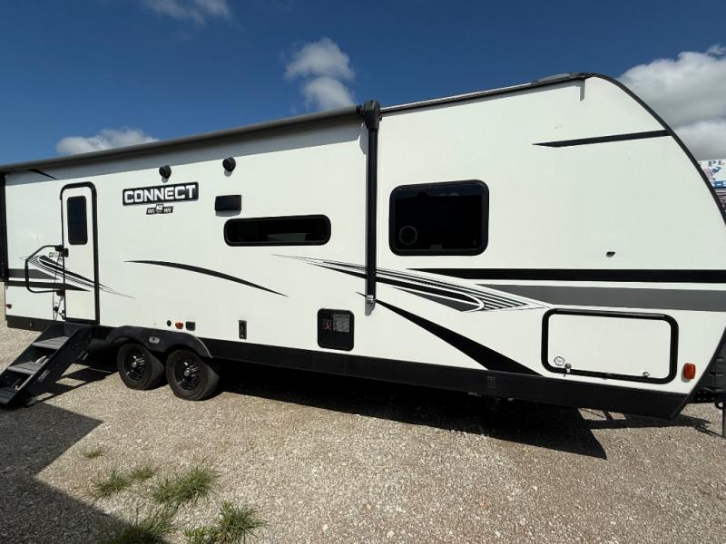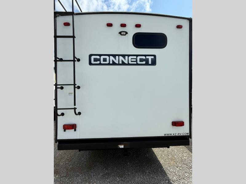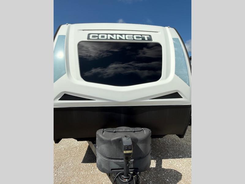 Your needs will be met and your desires will be fulfilled with this Connect travel trailer! Probably the thing you miss most when you camp is your comfortable bed back at home, and that's exactly why this trailer comes with a Serta Comfort foam king mattress in the private bedroom. The other thing you are prone to miss is your bathroom, and the full rear bathroom on this trailer is an excellent replacement with its 30" x 36" shower, skylight, linen closet, roof vent, porcelain foot-flush toilet, and large vanity. Sit back on the 70" sofa and enjoy a night of relaxation in front of the LED TV and fireplace. You can even grab a couple of drinks from the 8-cubic foot refrigerator, or you can make it a fun evening by playing a game together at the booth dinette.